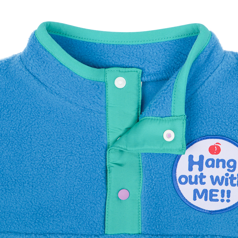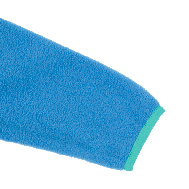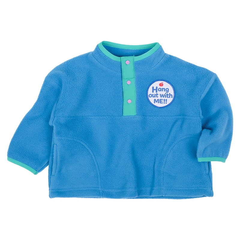 <商品サイズ> 80(身丈33・身幅35・袖丈20.5・裾幅39) 90(身丈35・身幅36・袖丈24・裾幅40) 100(身丈39・身幅39・袖丈28・裾幅42) 110(身丈42・身幅41・袖丈32・裾幅44) 120(身丈45・身幅43・袖丈36・裾幅46) <素材> 本体 ポリエステル100% バインダー ナイロン85%ポリウレタン15%