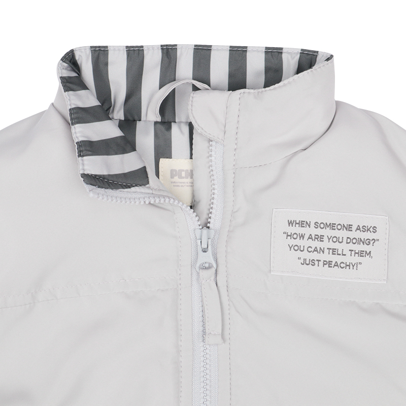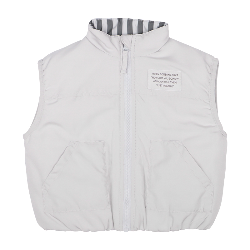 <商品サイズ> 80(身丈35・身幅37・肩幅33・裾幅30) 90(身丈37・身幅38・肩幅34・裾幅31) 100(身丈41・身幅40・肩幅36・裾幅33) 110(身丈44・身幅42・肩幅38・裾幅34) 120(身丈47・身幅44・肩幅40・裾幅36) <素材> 表地 ポリエステル100% 中わた ポリエステル100% 裏地 ポリエステル100% バインダー ナイロン85%ポリウレタン15%