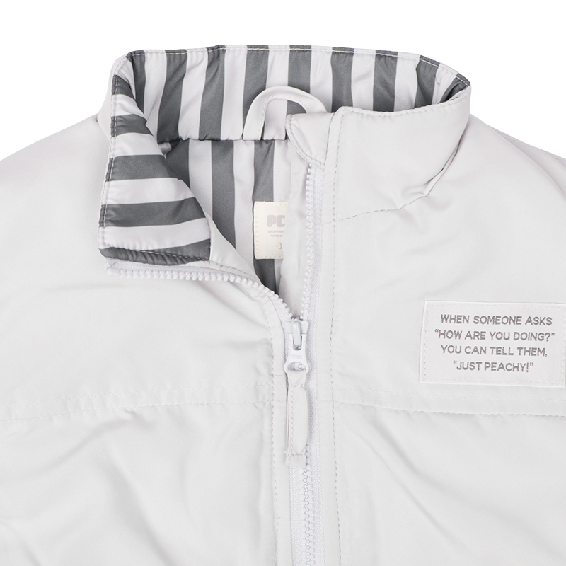 <商品サイズ> 80(身丈35・身幅37・肩幅33・裾幅30) 90(身丈37・身幅38・肩幅34・裾幅31) 100(身丈41・身幅40・肩幅36・裾幅33) 110(身丈44・身幅42・肩幅38・裾幅34) 120(身丈47・身幅44・肩幅40・裾幅36) <素材> 表地 ポリエステル100% 中わた ポリエステル100% 裏地 ポリエステル100% バインダー ナイロン85%ポリウレタン15%