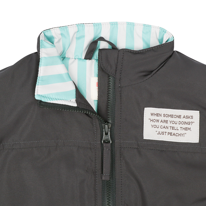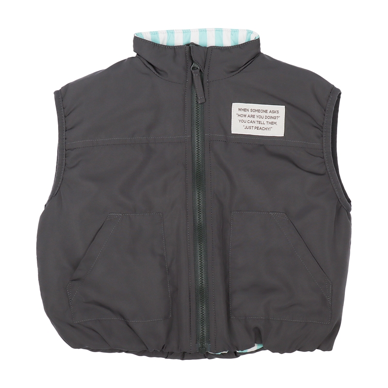 <商品サイズ> 80(身丈35・身幅37・肩幅33・裾幅30) 90(身丈37・身幅38・肩幅34・裾幅31) 100(身丈41・身幅40・肩幅36・裾幅33) 110(身丈44・身幅42・肩幅38・裾幅34) 120(身丈47・身幅44・肩幅40・裾幅36) <素材> 表地 ポリエステル100% 中わた ポリエステル100% 裏地 ポリエステル100% バインダー ナイロン85%ポリウレタン15%