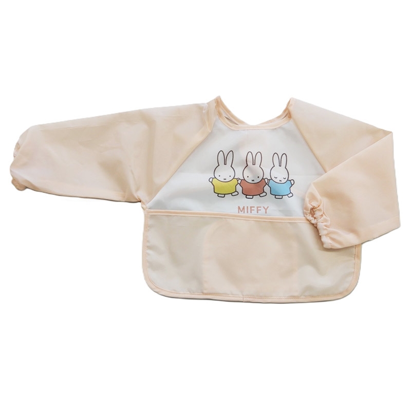 持ち運びに便利なポケッタブル長袖エプロン ポリエステル製のミッフィー柄長袖エプロンです。 手をつないだミッフィーとお友達が一緒でお食事時間が楽しくなります。 本体をひっくり返すとポケッタブルになり持ち運びに便利です。 うしろ側に付いている面ファスナーで留められるので脱着が簡単です。 (C)Mercis bv