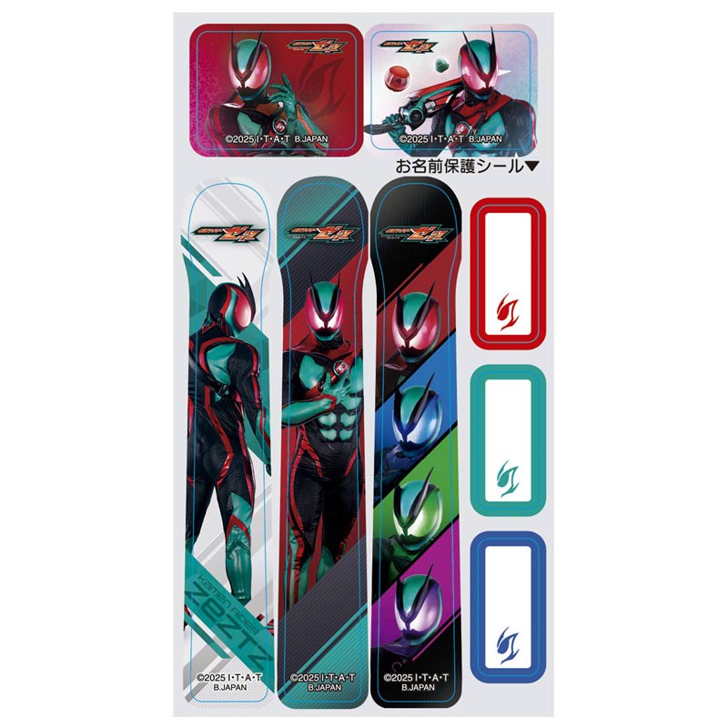 仮面ライダーゼッツのこどもハブラシが登場 ハブラシは3色の3本セットで乳歯が生えそろい永久歯にかわるまで使えるコンパクトヘッドです。ハブラシに貼るデザインシール3枚と、お好きなところに貼っていただけるおまけシール2枚が付いています。 書いた名前が落ちないように保護するお名前保護シール付きです。 (c)2025 石森プロ・テレビ朝日・ADK EM・東映