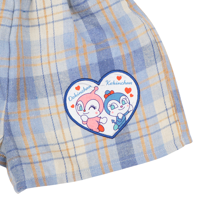 ●素材=ポリエステル78% 綿18% レーヨン4% ●サイズ(約・cm)= [80]総丈26 前股上19 股下4 ウエスト上がり19 ヒップ幅38 [90]総丈27.5 前股上19.5 股下5 ウエスト上がり20 ヒップ幅39 ●洗濯表示=洗濯可 ●原産国=中国製 (C)やなせたかし/フレーベル館・TMS・NTV