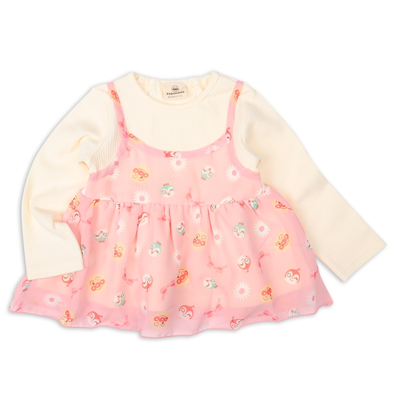 ●素材=無地部分 綿57% ポリエステル38% ポリウレタン5% 総柄部分 ポリエステル100% ●サイズ(約・cm)= [80]身丈(本体裾)35 身幅24 肩幅20 袖丈28 [90]身丈(本体裾)37 身幅25 肩幅21 袖丈31 [100]身丈(本体裾)41 身幅27 肩幅23 袖丈34 ●洗濯表示=洗濯可 ●原産国=中国製 (c)やなせたかし/フレーベル館・TMS・NTV