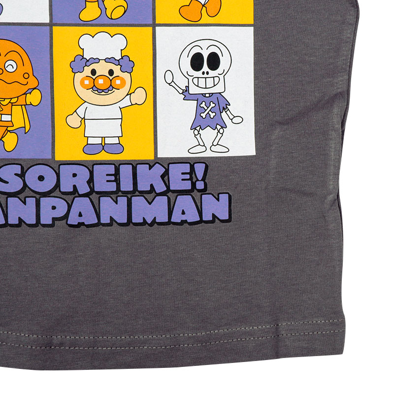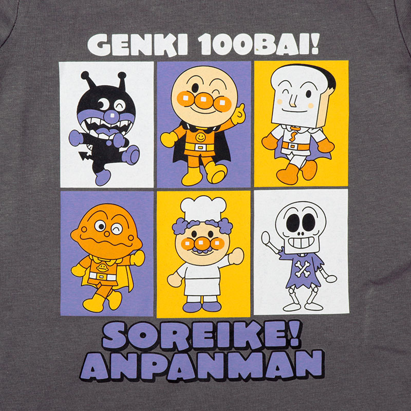 ●素材=綿100% ●サイズ(約・cm)= [80]着丈34 身幅29 肩幅22 袖丈27 [90]着丈37 身幅30 肩幅23 袖丈30 [100]着丈41 身幅32 肩幅25 袖丈33 ●洗濯表示=洗濯可 ●原産国=バングラデシュ製 (C)やなせたかし/フレーベル館・TMS・NTV