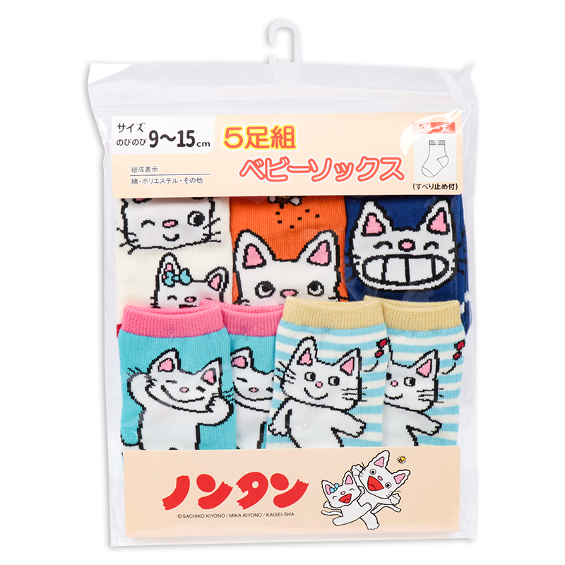 ノンタンの絵柄がかわいらしい、ソックス5足組セットです。 デザインもそれぞれ違うので、コーディネイトや気分に合わせて選んで頂けます。 靴下の底に滑り止めが付いているので、屋内で走る時や屋外の遊び時に足を保護してくれます。