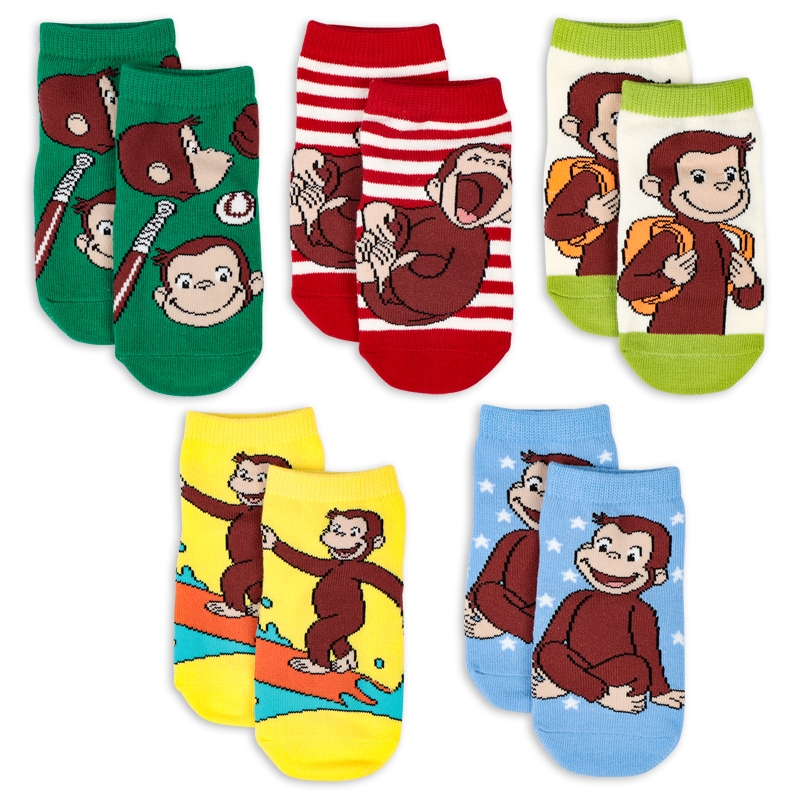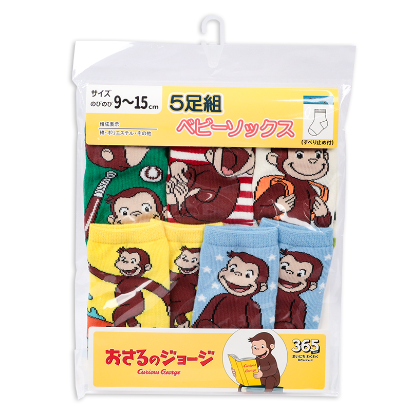 おさるのジョージの絵柄がかわいらしい、ソックス5足組セットです。