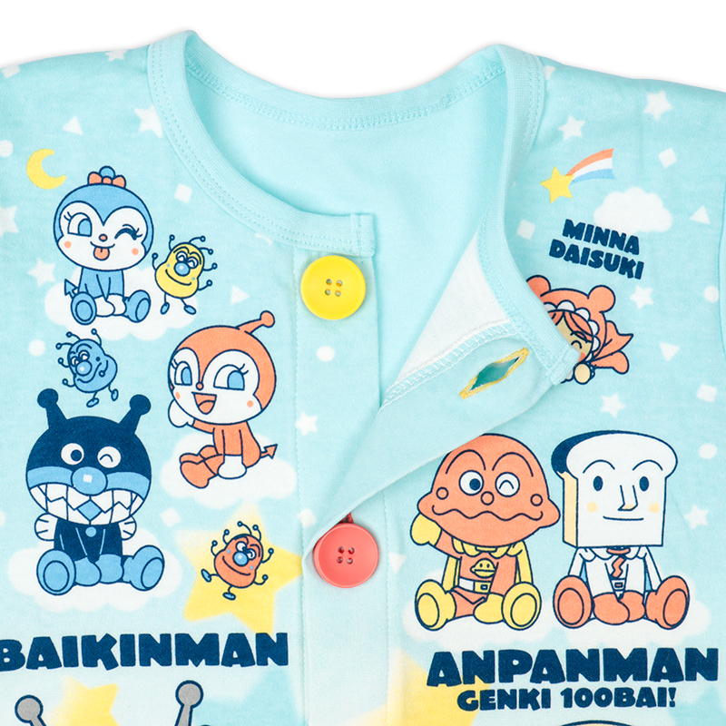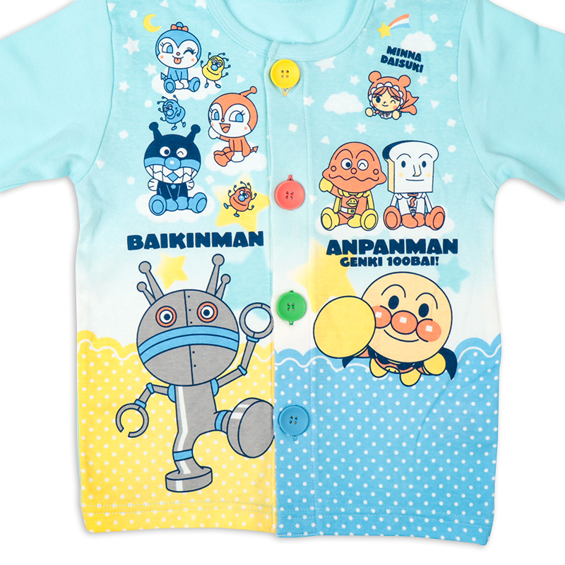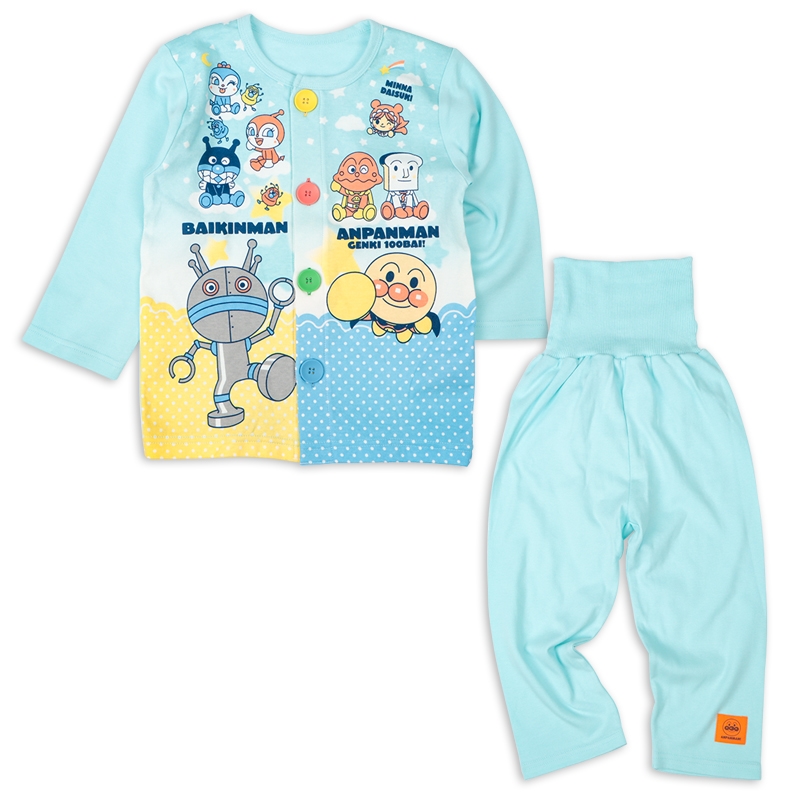 ●素材=[本体]綿100% [腹巻部分]綿97% ポリウレタン3% ●サイズ(約・cm)= [80](トップス)着丈36 背肩巾26.5 身巾31 袖丈25 (ズボン)丈39 股上16 腹巻巾16 ヒップ幅32 [90](トップス)着丈39 背肩巾27.5 身巾32 袖丈27 (ズボン)丈42 股上17 腹巻巾16 ヒップ幅33 [95](トップス)着丈41 背肩巾28.5 身巾33 袖丈29 (ズボン)丈45 股上18 腹巻巾16 ヒップ幅33.5 [100](トップス)着丈44.5 背肩巾29.5 身巾34 袖丈31 (ズボン)丈50 股上19 腹巻巾16 ヒップ幅35.5 ●洗濯表示=洗濯可 ●原産国=中国製 (C)やなせたかし/フレーベル館・TMS・NTV