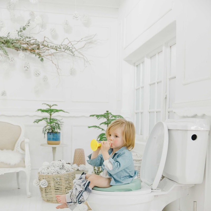 バンボベビーソファと同じ素材を使った補助便座。ふんわり深く座れて安心!