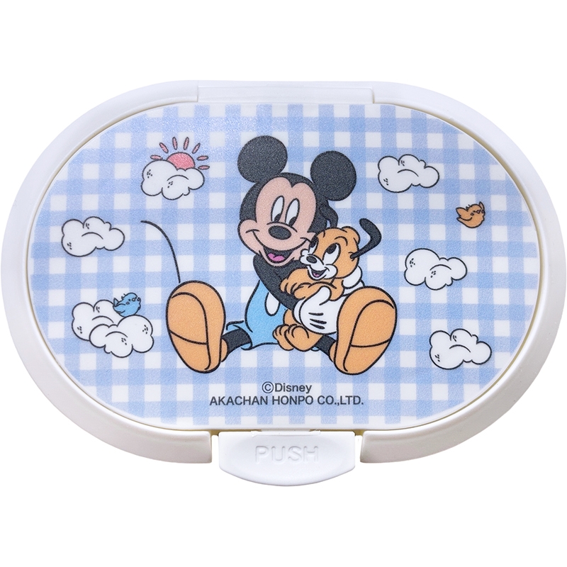 おしりふき、クリーナーシート、ウェットティッシュなどのパッケージ取り出し口に貼って使うフタです。 繰り返し付け外しができる粘着シール付きでワンプッシュで開閉できます。 取り出し口にストッパーが付いているので1枚ずつ取り出しやすい仕様です。 かわいいミッキー柄です。 (c)Disney