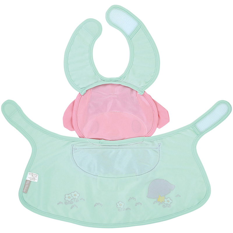 食べこぼしキャッチポケットと着脱簡単でサイズ調節も出来る面テープ付きです。