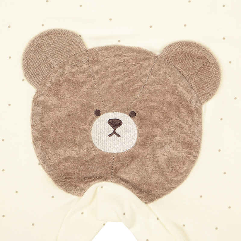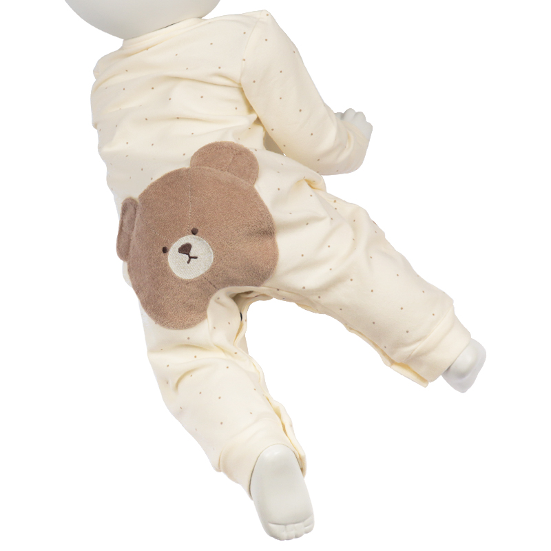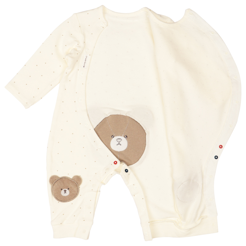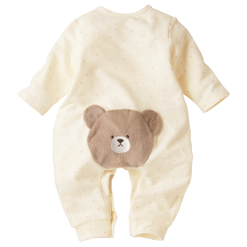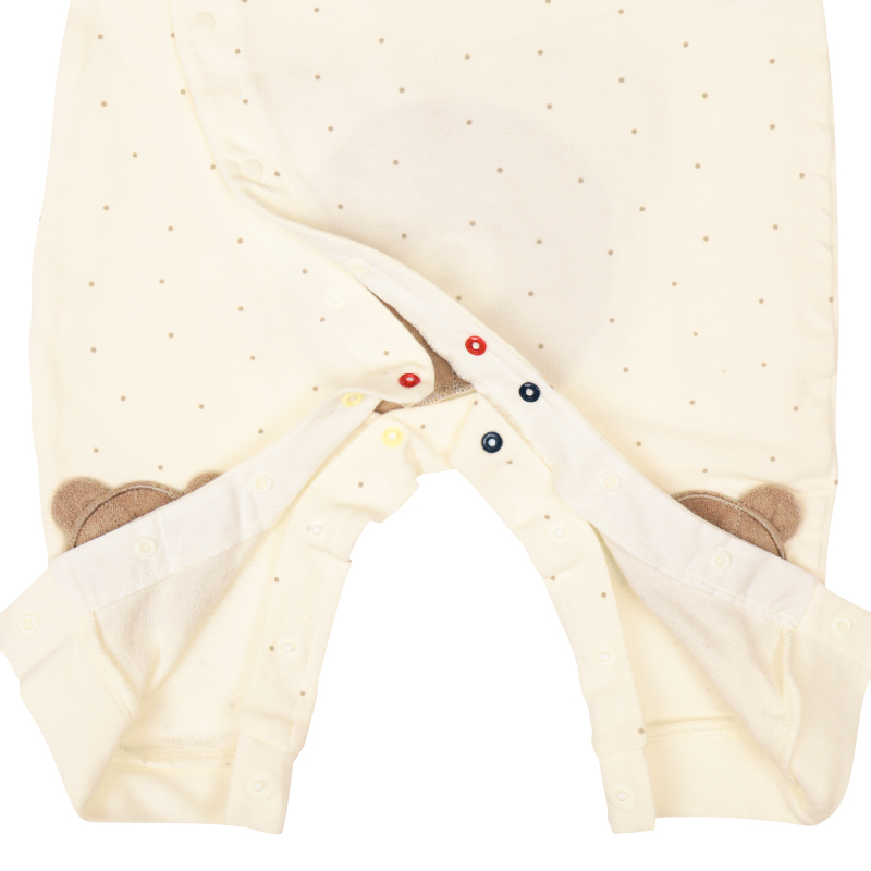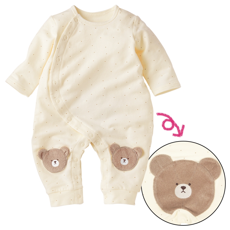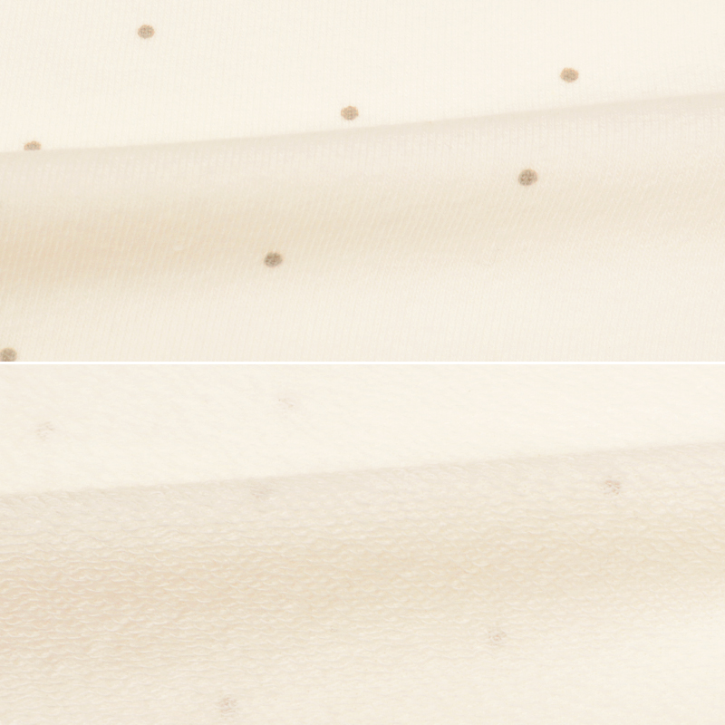 ●素材=本体 綿96% ポリウレタン4% 切替 綿78% ポリエステル22% ●サイズ(約・cm)= 60(身丈51・身幅25・袖丈19.5) 70(身丈55・身幅26・袖丈22.5) 80(身丈59・身幅27・袖丈25.5)