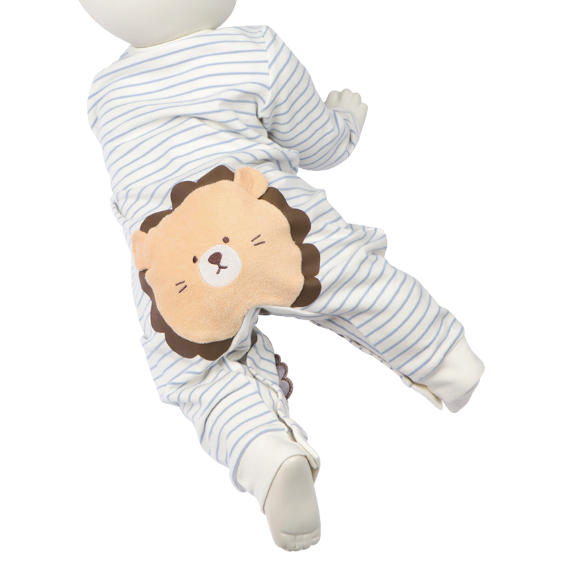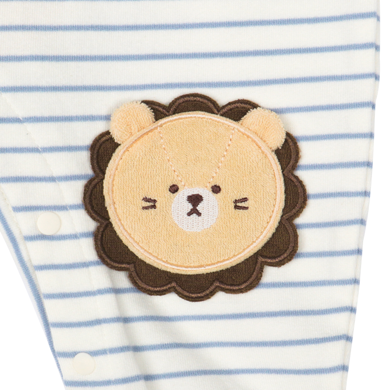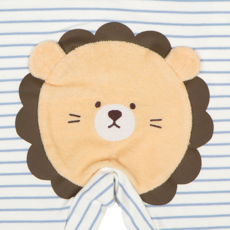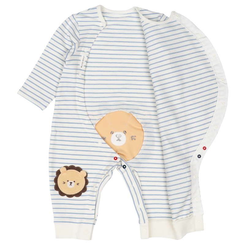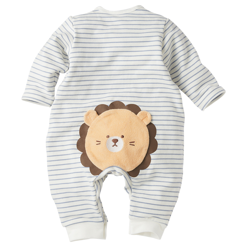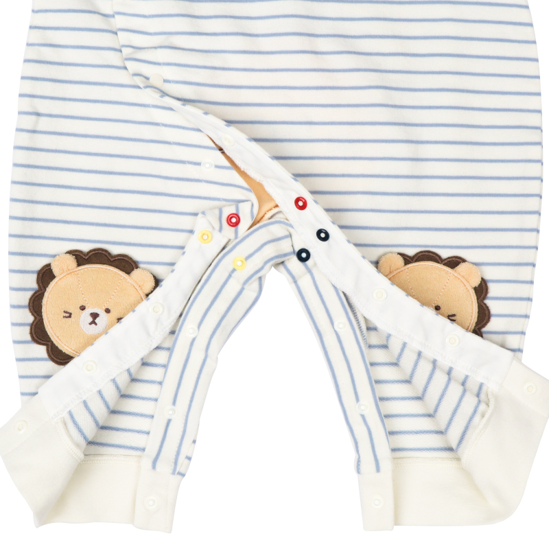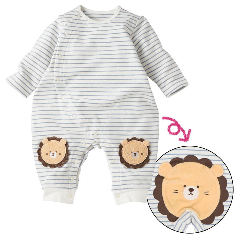 ●素材=本体 綿96% ポリウレタン4% 切替 綿78% ポリエステル22% ●サイズ(約・cm)= 60(身丈51・身幅25・袖丈19.5) 70(身丈55・身幅26・袖丈22.5) 80(身丈59・身幅27・袖丈25.5)
