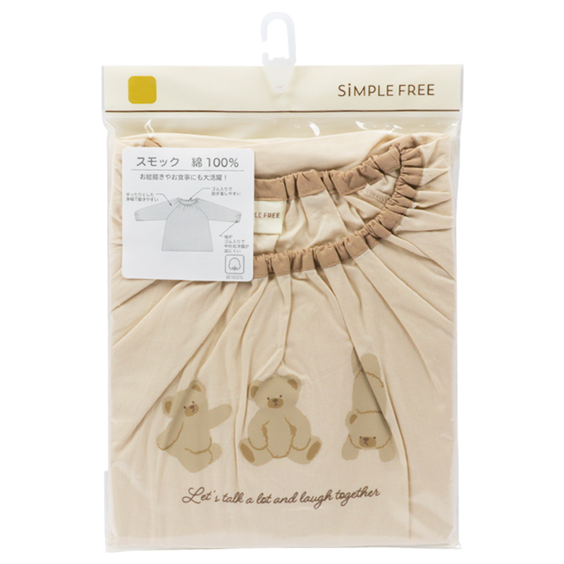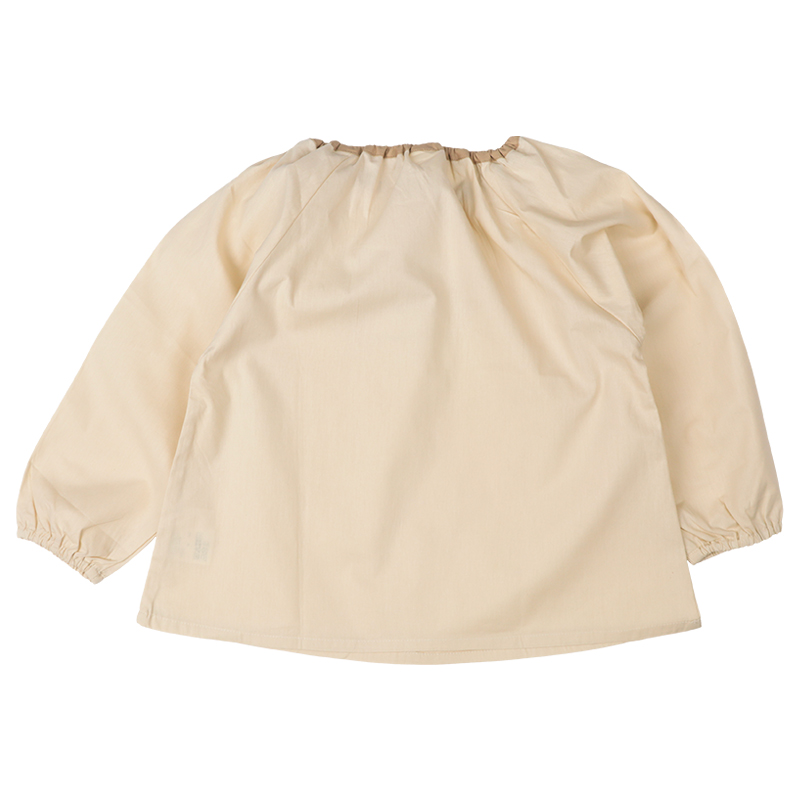 小さなお子様は、お絵描きやお食事で服を汚しがち。そんなときに大活躍なのがスモック。 天然素材の綿100%の布帛素材を使用した、ゆったりとした身巾で動きやすい商品となっています。 首まわりはゴム入り仕様で脱ぎ着しやすく、袖口もゴム入りで中の洋服が出にくい仕様となっています。