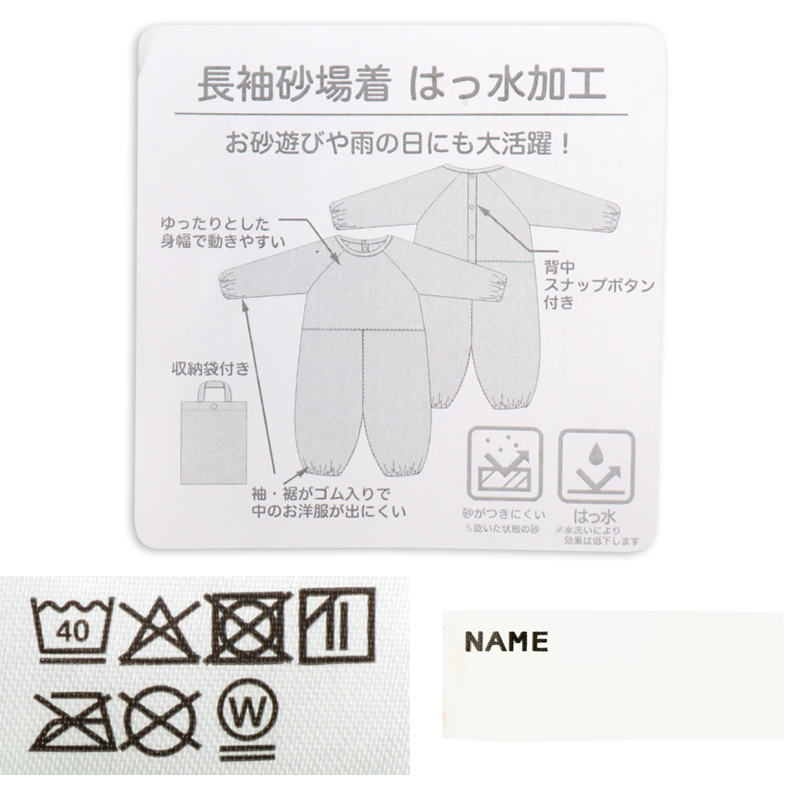そんな衣服を守り元気いっぱい遊んでいただくための、オールインタイプの長袖砂場着です。