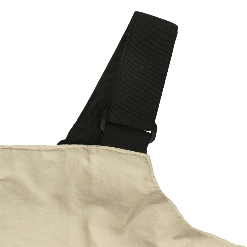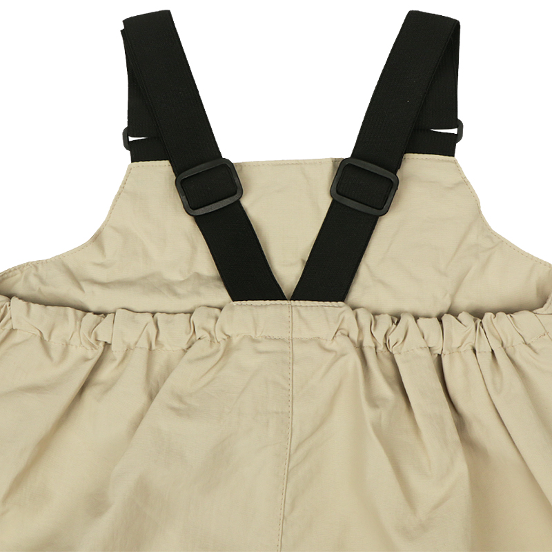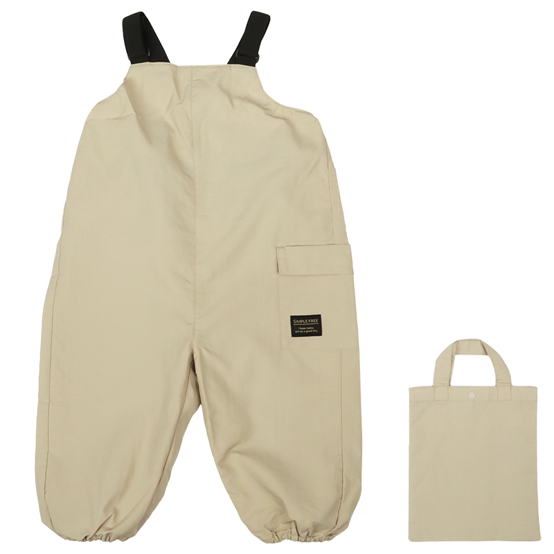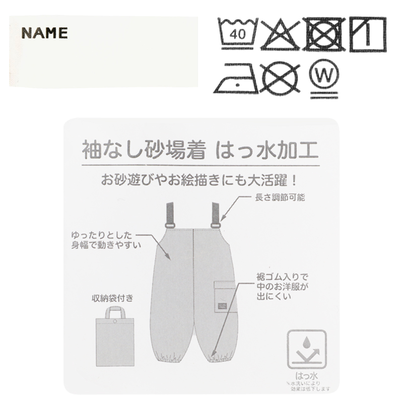 元気なお子様のお砂遊びは、どうしても砂で汚れがち。 そんな衣服を守り元気いっぱい遊んでいただくための、オールインタイプの袖なし砂場着です。 ナイロン素材のアウトドアテイスト風のデザインです。ゆったりとした身巾で動きやすい商品となっています。 足口はゴム入りで中の洋服が出にくい仕様となっています。 水をはじきやすい、はっ水加工がほどこされていて雨の日にも便利。