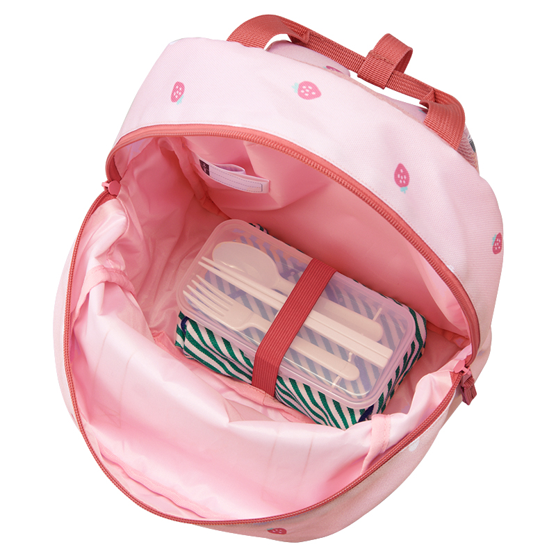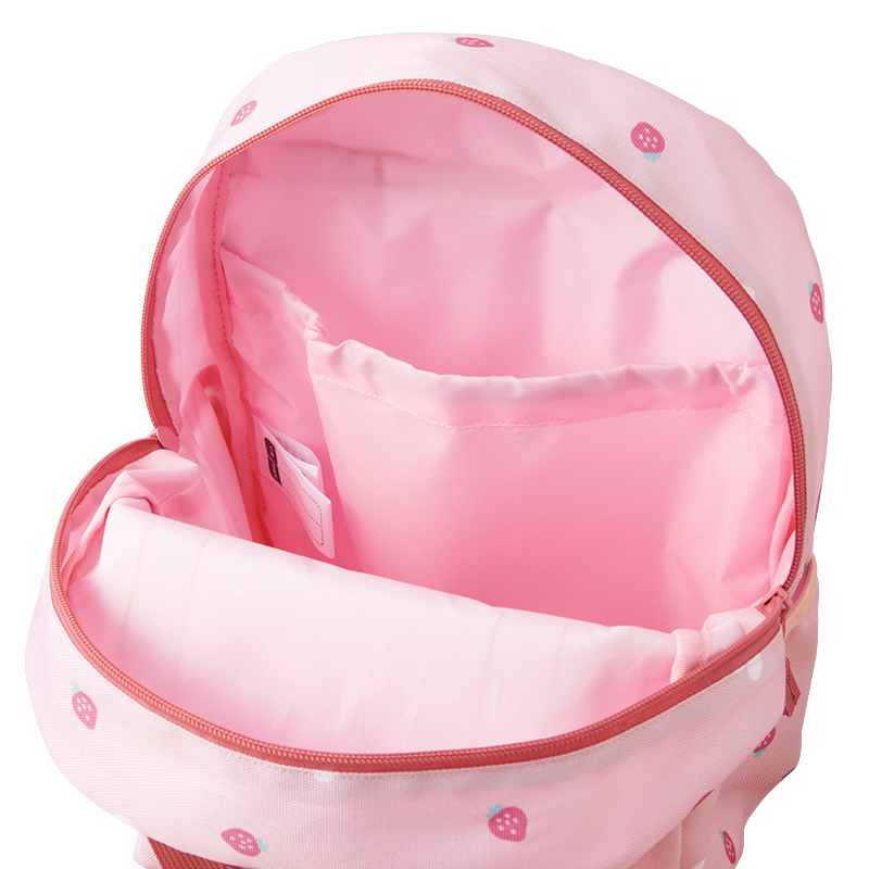 フロントと両サイド、内部にポケットがついているので、遠足などで荷物が増えても仕分けしやすいです。