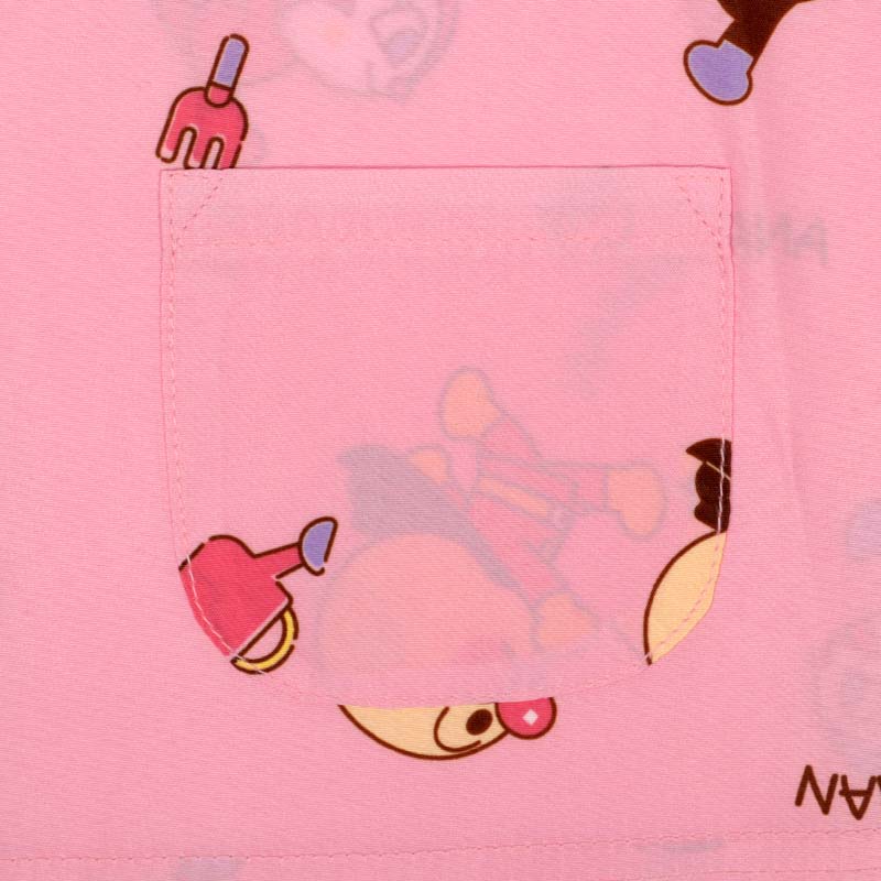 ●素材=ポリエステル100% ●サイズ(約・cm)= [90]着丈38 身幅34 桁丈44.5 袖幅16 袖口幅7.5 衿回り33 裾幅42 [100]着丈44 身幅38 桁丈49.5 袖幅18 袖口幅8 衿回り35 裾幅46 ●洗濯表示=洗濯可 ●原産国=中国製 (c)やなせたかし/フレーベル館・TMS・NTV