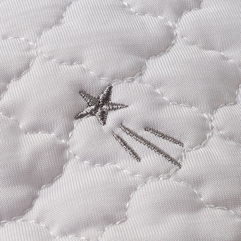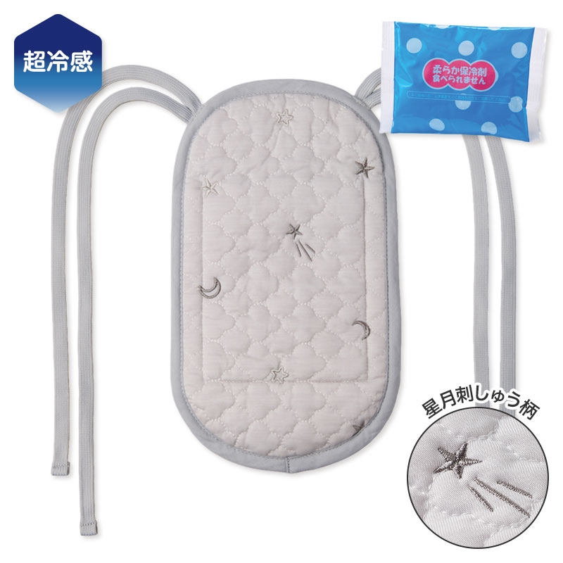 更に冷たい超冷感素材を使用した日本製ジェル1個付きだっこひもシート。 更に冷たい超冷感素材を使用しただっこひもシート。 日本製保冷剤がセットできて夏のお出かけで暑さを和らげます。 保冷剤は取り外しができ、なしでも使用できます。 表面の素材は接触冷感機能があります。 また、裏地は立体メッシュを使用、熱のこもりやすい背中の通気性を キープできるような設計になっています。 定番の星月刺繍デザインです。