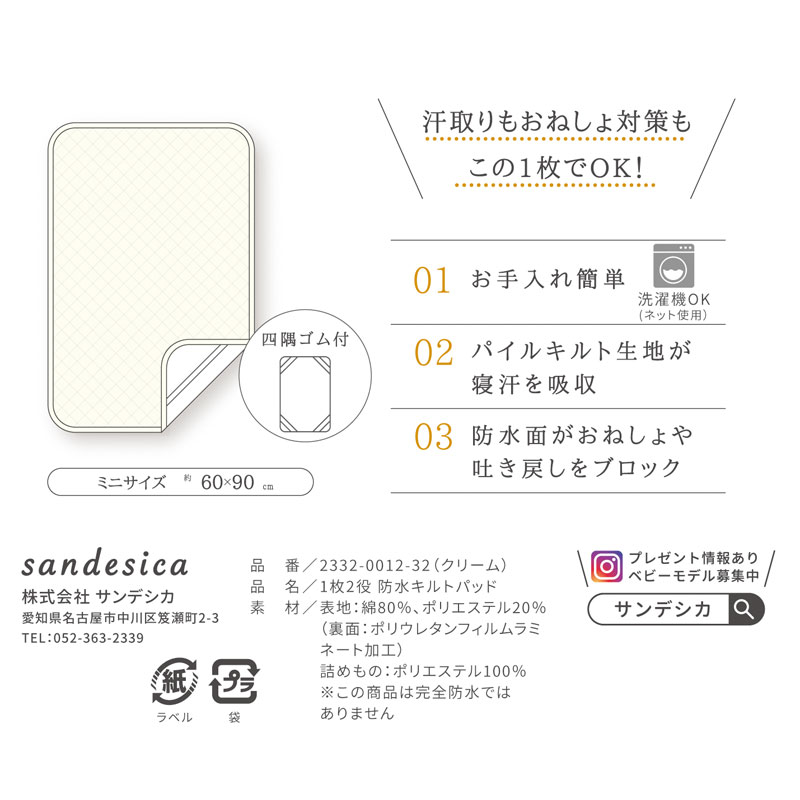 [表地]綿80%・ポリエステル20%([裏面]ポリウレタンフィルムラミネート加工)