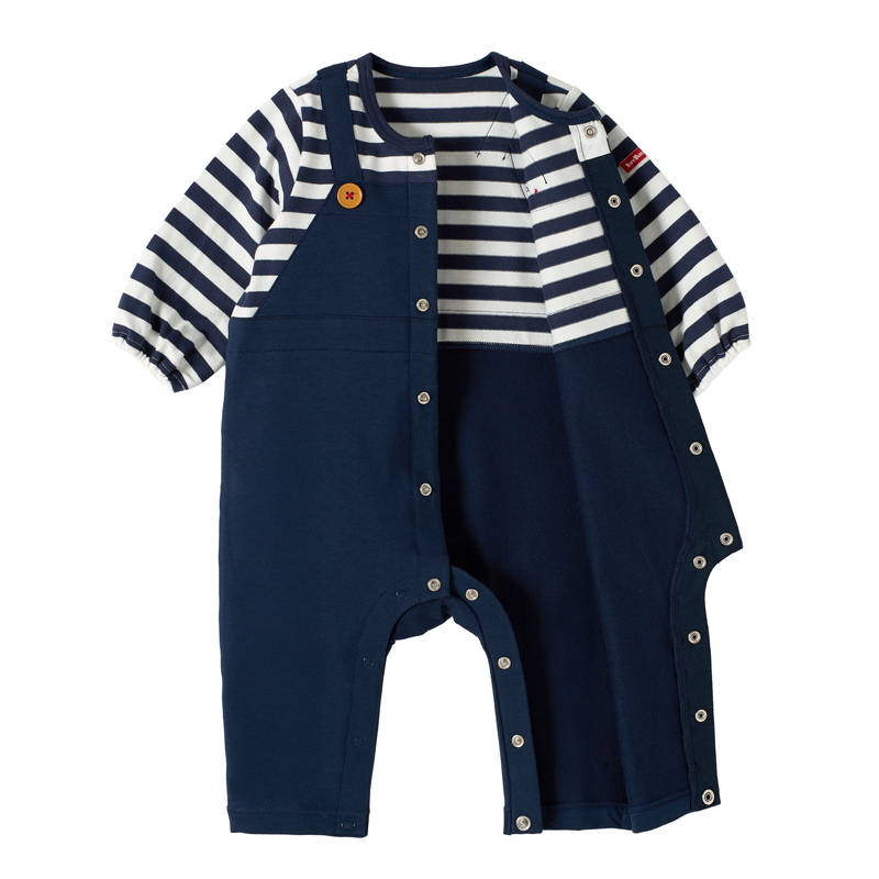 ●素材=ストレッチインレイ、(Tシャツ部分)40/2天竺ボーダー ●品質=綿 96%、ポリウレタン 4%、(Tシャツ部分) 綿 100%、(リブ部分) 綿 73%、複合繊維(ポリエステル) 27% ●原産国=中国