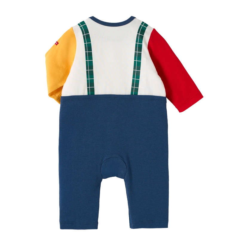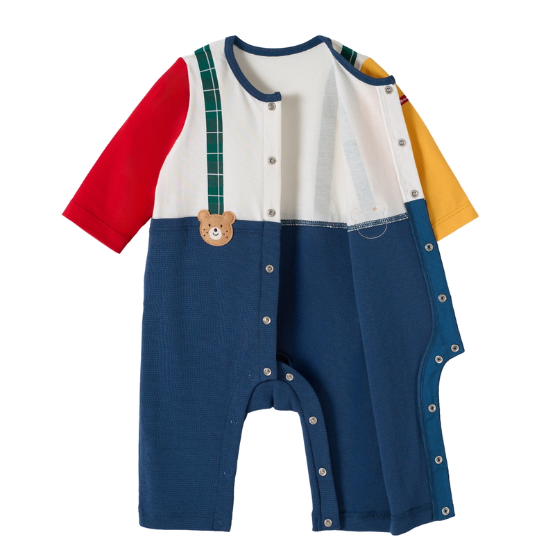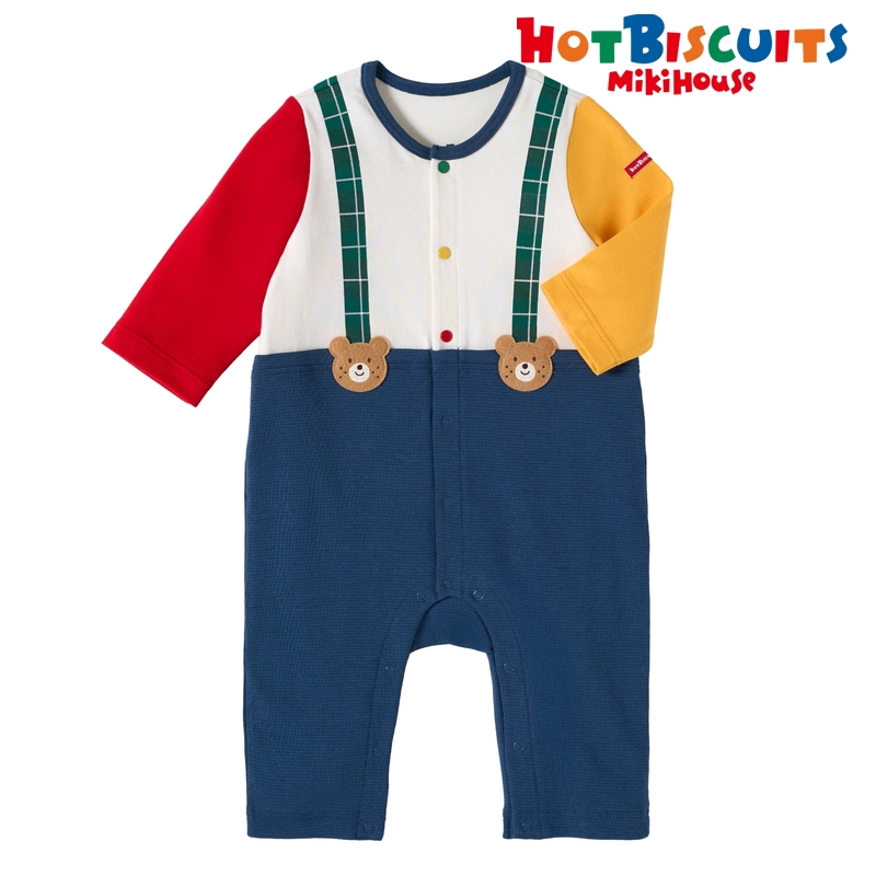 ミキハウス ホットビスケッツのカバーオール(ロンパース)。 サスペンダーコーディネート風のカバーオールです。 チェック柄のサスペンダーとビーンズのワッペンがポイント! [素材感] Tシャツ部分はさらっとした肌触りで通気性がよく、汗をしっかりと吸収し丈夫な天竺素材。 パンツ部分はやわらかなフライス素材。 ……………………………………… 伸縮性:あり 生地:Tシャツ部分 綿100% 袖丈:長袖 おすすめ着用シーズン:春秋冬 ……………………………………… ●前ホックで股下まで全開するので、お着替えやオムツ替えも便利 ●お尻はゆったりマチつきで、活発なお子さまの動きを妨げません 《HOT BISCUITS ーホットビスケッツー》 ミキハウスホットビスケッツは、”Good Quality”がキーワードのブランド。 子どもたちには毎日ごきげんに、楽しく健やかに 過ごしてほしいから、 お子さまのための良いものづくりを大切にしています。 男の子も女の子も子どもらしく、おしゃれに可愛く着られるアイテムがいっぱい。 赤ちゃんからキッズまでの子ども服・ベビー服・ベビー用品等を幅広くご用意しています。 春夏秋冬の季節に合わせた、ご出産祝いやプレゼント、ギフトもおすすめです。