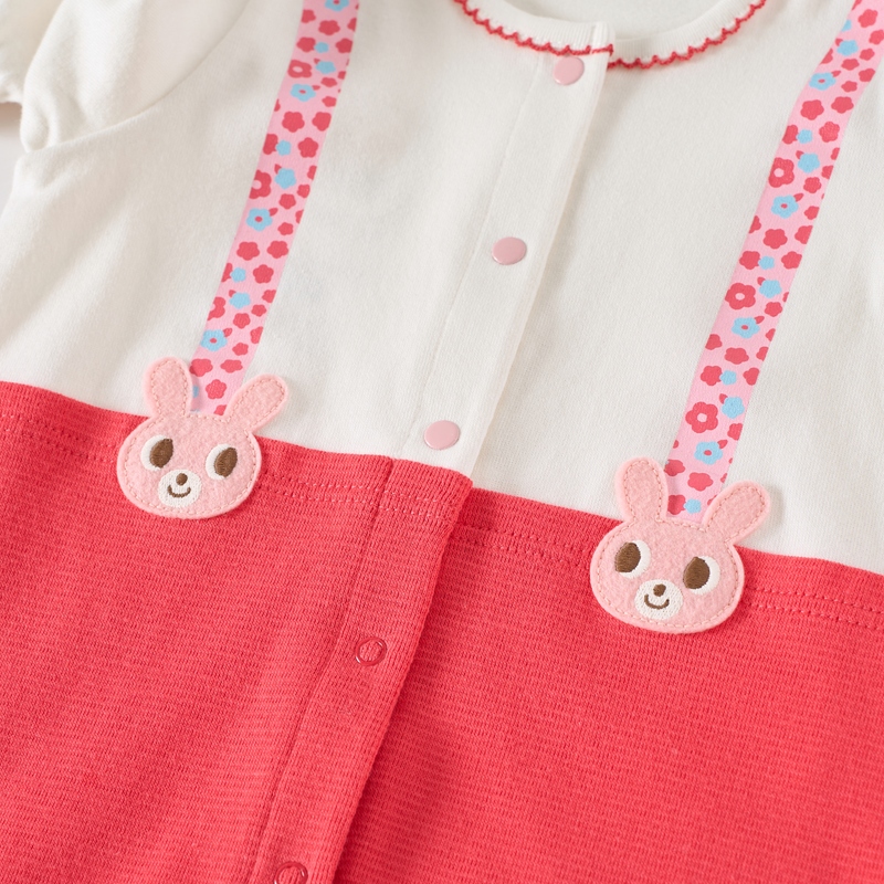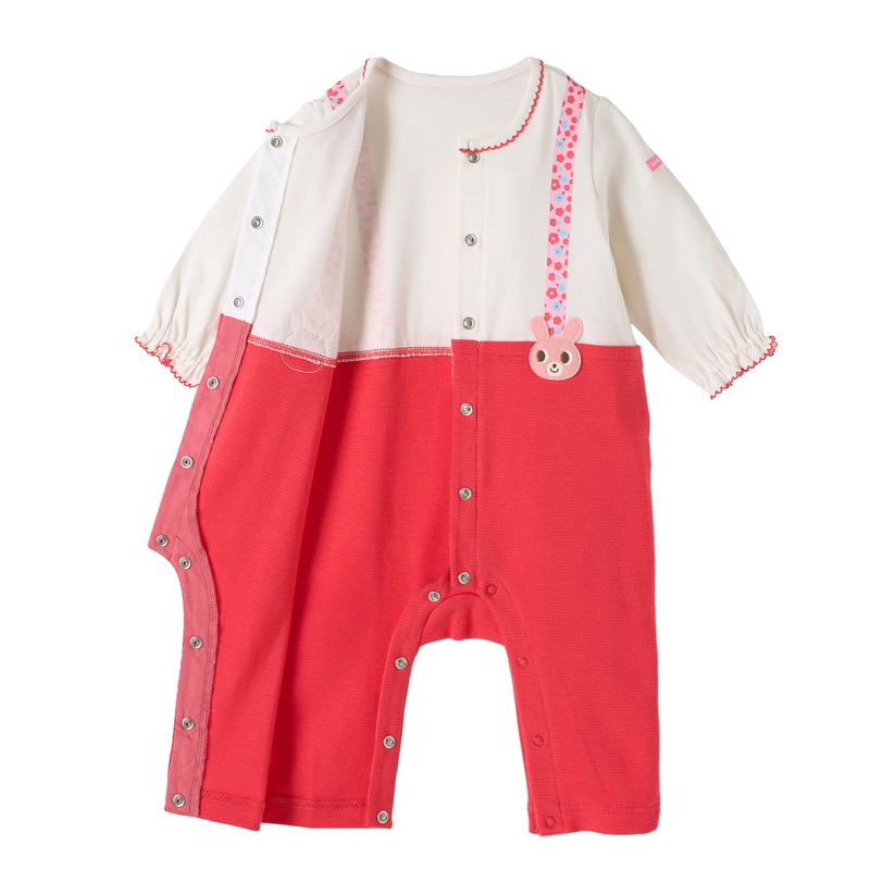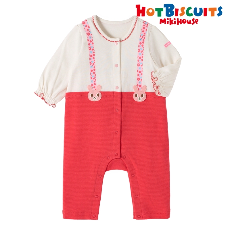 ミキハウス ホットビスケッツのカバーオール(ロンパース)。 サスペンダーコーディネート風のカバーオールです。 花柄のサスペンダーとキャビットのワッペンがポイント! [素材感] Tシャツ部分はさらっとした肌触りで通気性がよく、汗をしっかりと吸収し丈夫な天竺素材。 パンツ部分はやわらかなフライス素材。 ……………………………………… 伸縮性:あり 生地:Tシャツ部分 綿100% 袖丈:長袖 おすすめ着用シーズン:春秋冬 ……………………………………… ●前ホックで股下まで全開するので、お着替えやオムツ替えも便利 ●お尻はゆったりマチつきで、活発なお子さまの動きを妨げません 《HOT BISCUITS ーホットビスケッツー》 ミキハウスホットビスケッツは、”Good Quality”がキーワードのブランド。 子どもたちには毎日ごきげんに、楽しく健やかに 過ごしてほしいから、 お子さまのための良いものづくりを大切にしています。 男の子も女の子も子どもらしく、おしゃれに可愛く着られるアイテムがいっぱい。 赤ちゃんからキッズまでの子ども服・ベビー服・ベビー用品等を幅広くご用意しています。 春夏秋冬の季節に合わせた、ご出産祝いやプレゼント、ギフトもおすすめです。