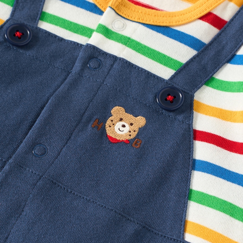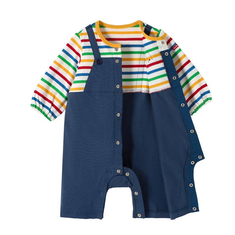 ミキハウス ホットビスケッツのカバーオール(ロンパース)。 オーバーオール重ね着風のカバーオールです。 カラフルなボーダーがポイント! [素材感] さらっとした肌触りで通気性がよく、汗をしっかりと吸収し丈夫な天竺素材。 ……………………………………… 伸縮性:あり 生地:綿100% 袖丈:長袖 おすすめ着用シーズン:春秋 ……………………………………… ●前ホックで股下まで全開するので、お着替えやオムツ替えも便利 ●お尻はゆったりマチつきで、活発なお子さまの動きを妨げません 《HOT BISCUITS ーホットビスケッツー》 ミキハウスホットビスケッツは、”Good Quality”がキーワードのブランド。 子どもたちには毎日ごきげんに、楽しく健やかに 過ごしてほしいから、 お子さまのための良いものづくりを大切にしています。 男の子も女の子も子どもらしく、おしゃれに可愛く着られるアイテムがいっぱい。 赤ちゃんからキッズまでの子ども服・ベビー服・ベビー用品等を幅広くご用意しています。 春夏秋冬の季節に合わせた、ご出産祝いやプレゼント、ギフトもおすすめです。