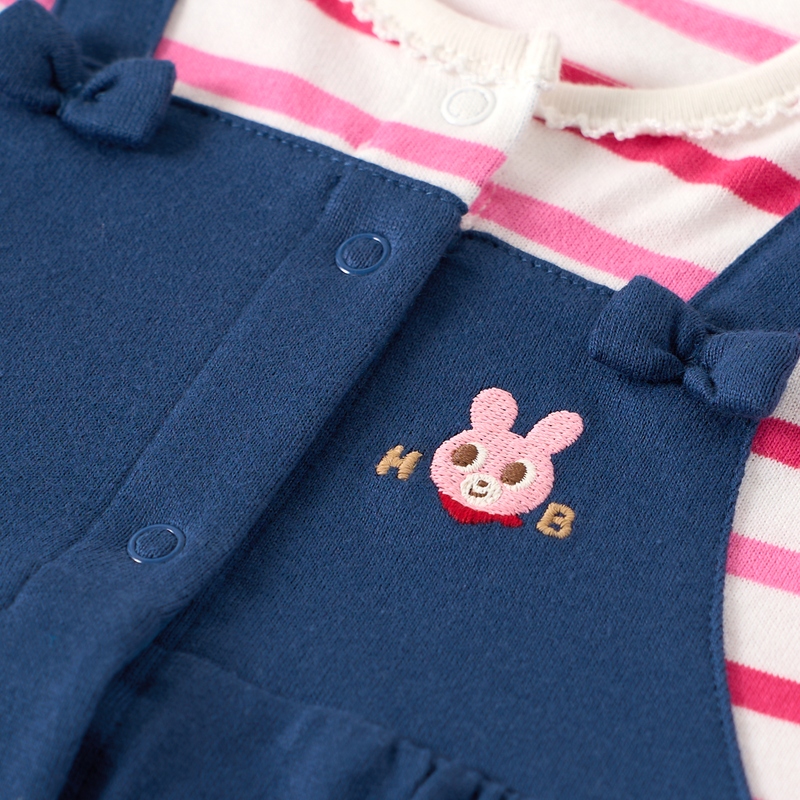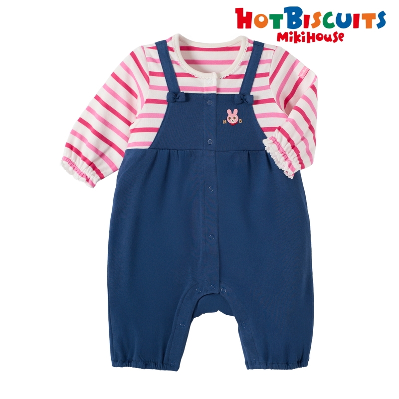 ミキハウス ホットビスケッツのカバーオール(ロンパース)。 オーバーオール重ね着風のカバーオールです。 カラフルなボーダーと胸元のリボンがポイント! [素材感] さらっとした肌触りで通気性がよく、汗をしっかりと吸収し丈夫な天竺素材。 ……………………………………… 伸縮性:あり 生地:綿100% 袖丈:長袖 おすすめ着用シーズン:春秋 ……………………………………… ●前ホックで股下まで全開するので、お着替えやオムツ替えも便利 ●お尻はゆったりマチつきで、活発なお子さまの動きを妨げません 《HOT BISCUITS ーホットビスケッツー》 ミキハウスホットビスケッツは、”Good Quality”がキーワードのブランド。 子どもたちには毎日ごきげんに、楽しく健やかに 過ごしてほしいから、 お子さまのための良いものづくりを大切にしています。 男の子も女の子も子どもらしく、おしゃれに可愛く着られるアイテムがいっぱい。 赤ちゃんからキッズまでの子ども服・ベビー服・ベビー用品等を幅広くご用意しています。 春夏秋冬の季節に合わせた、ご出産祝いやプレゼント、ギフトもおすすめです。