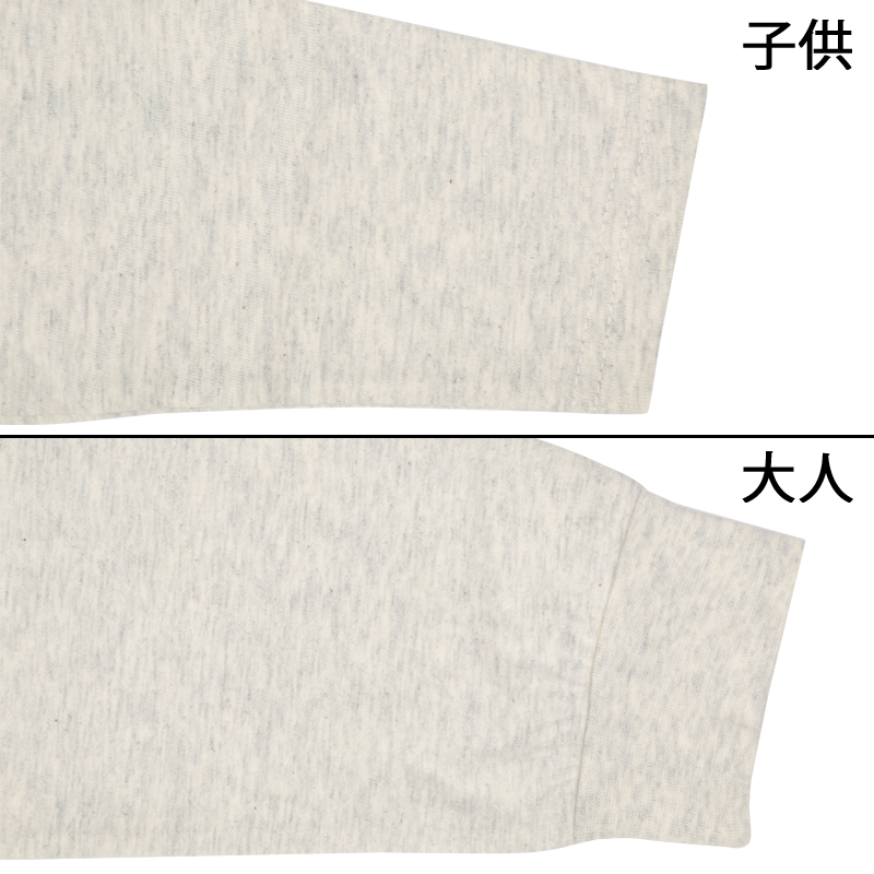 <商品サイズ> 80(身丈35・身幅34・肩幅34・袖丈20.5) 90(身丈37・身幅35・肩幅35・袖丈24) 100(身丈41・身幅37・肩幅37・袖丈27) 110(身丈44・身幅39・肩幅39・袖丈30.5) 120(身丈47・身幅41・肩幅41・袖丈34) F(身丈70・身幅54・肩幅47・袖丈60) <素材> [本体]綿100% [リブ部分]綿95%ポリウレタン5%