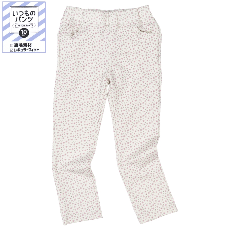 綿56%ポリエステル38%ポリウレタン6% 【100cm】ウエスト44ヒップ58.5総丈57 【110cm】ウエスト46ヒップ62.2総丈63 【120cm】ウエスト48ヒップ66総丈69 【130cm】ウエスト50ヒップ70総丈75