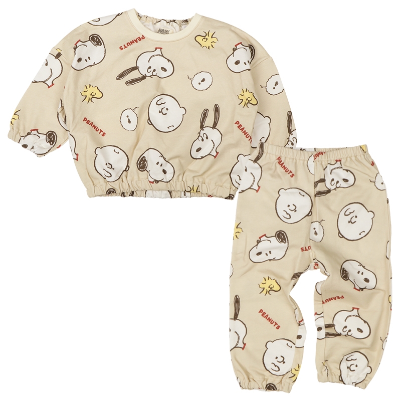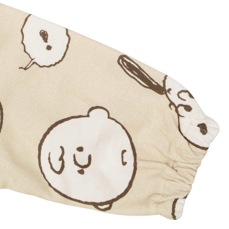 ●素材= 本体 綿100% リブ部分 綿95% ポリウレタン5% ●サイズ(約・cm)= 80(身丈35・身幅40・袖丈18・股上20.5・股下25) 90(身丈37・身幅41・袖丈20・股上21・股下28) 95(身丈39・身幅42・袖丈22・股上21.5・股下31) 100(身丈41・身幅43・袖丈24・股上22・股下34)