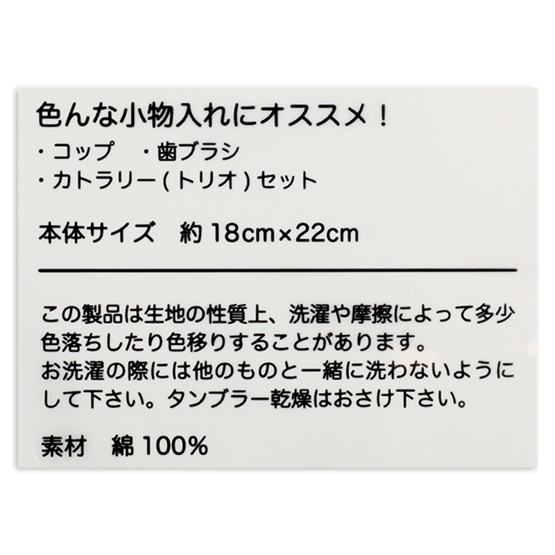 また、普段使いの小物入れとしてお使いいただけます。コットン素材なので繰り返し洗って使えます。
