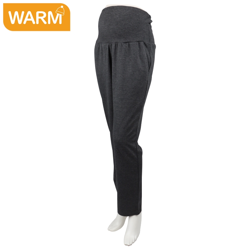 ウールのような温もり感素材。秋冬から春先までご着用いただける厚すぎない中肉素材です。程よいシルエットで身体のラインを拾いにくく、ストレッチも効いて動きやすいゆったりとしたストレスフリーな穿き心地も魅力です。 お腹周りは共生地で産前産後も使いやすい仕様です。産後は、ウエストを折り返して丈調節も可能です。