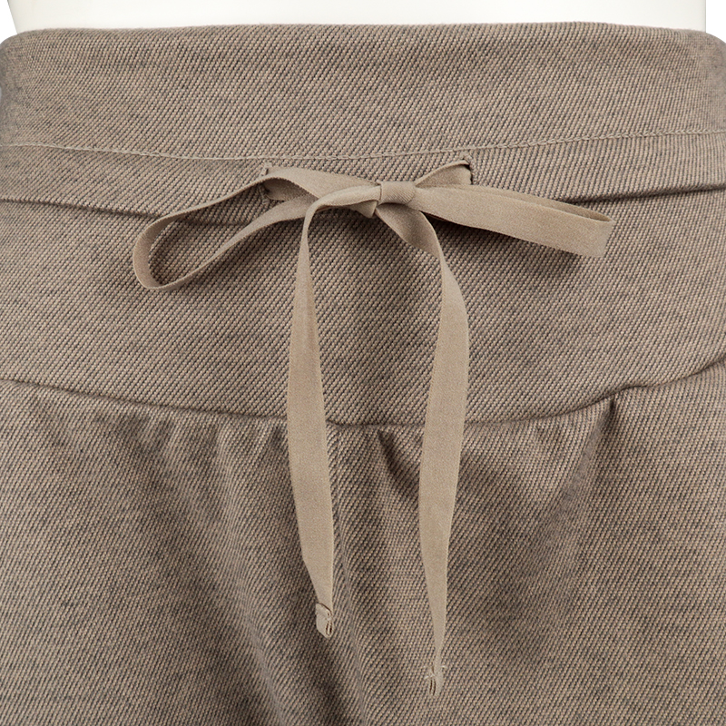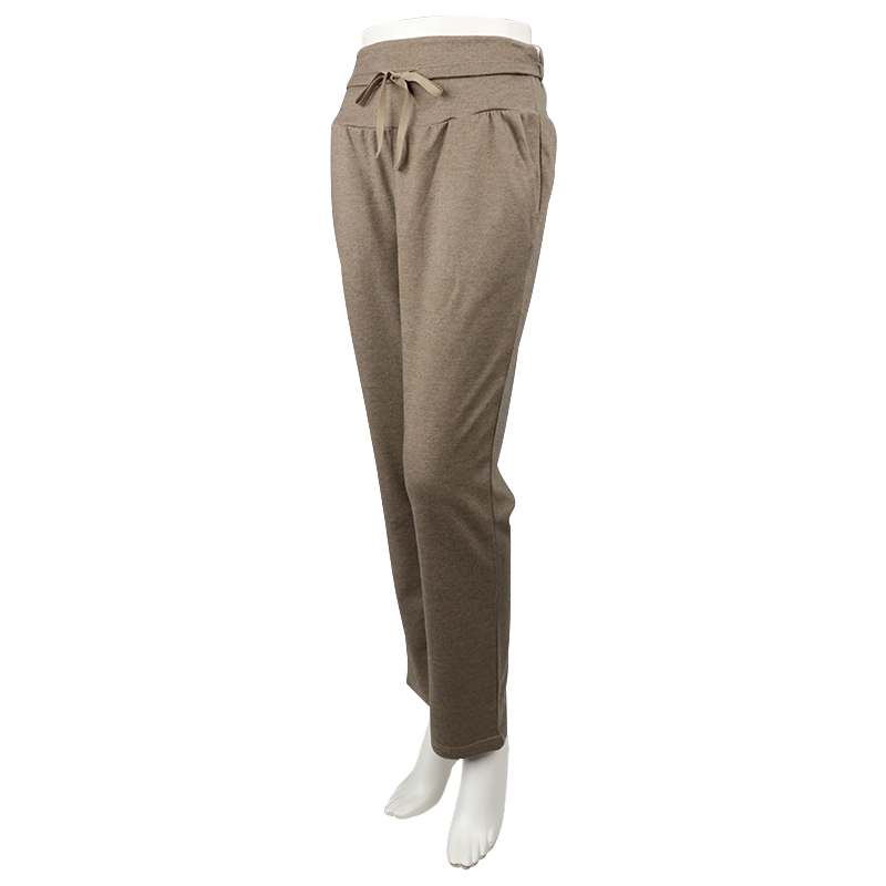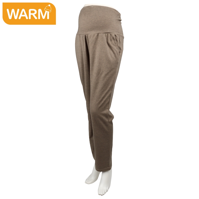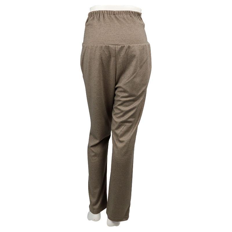 ウールのような温もり感素材。秋冬から春先までご着用いただける厚すぎない中肉素材です。程よいシルエットで身体のラインを拾いにくく、ストレッチも効いて動きやすいゆったりとしたストレスフリーな穿き心地も魅力です。 お腹周りは共生地で産前産後も使いやすい仕様です。産後は、ウエストを折り返して丈調節も可能です。