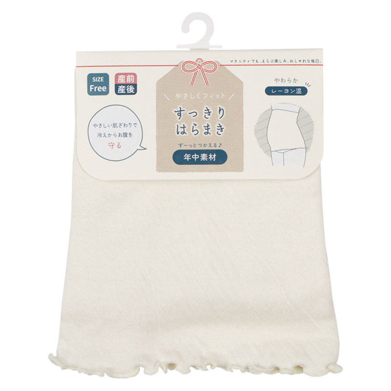 レーヨン混のやわらかな薄手のストレッチ素材で、一年を通して着用出来ます。 脇縫いが無く肌あたりがよいはらまきです。 締め付け感がなく大きくなるお腹にほどよくフィットし、産前から産後まで長く使えます。 妊娠中は皮ふが伸びて薄くなり体の熱が外へ逃げやすくなるので、大切なお腹を冷えから守りましょう。