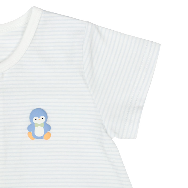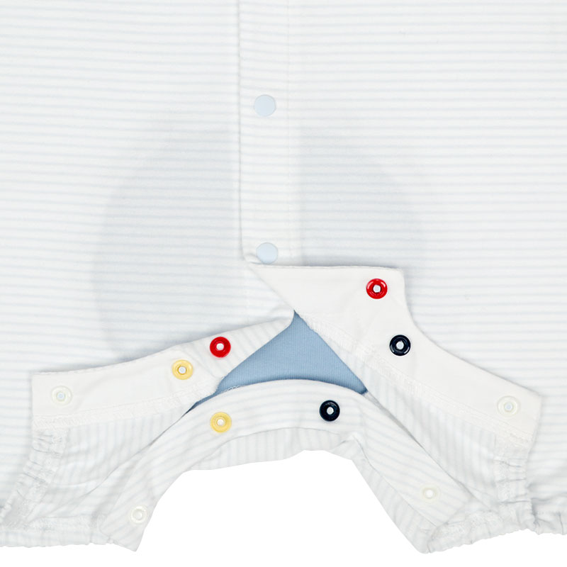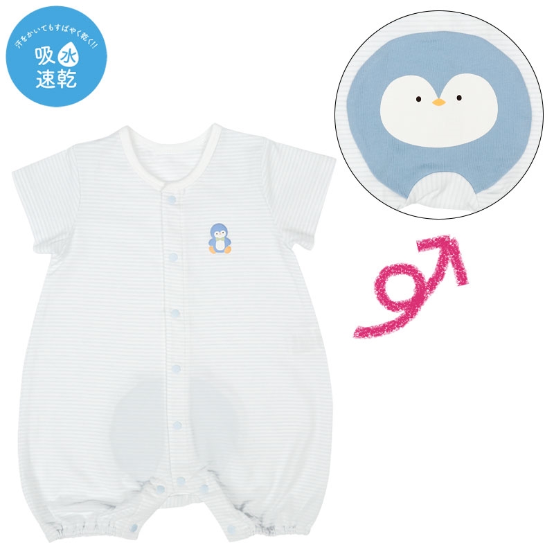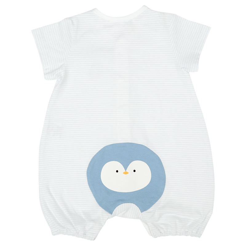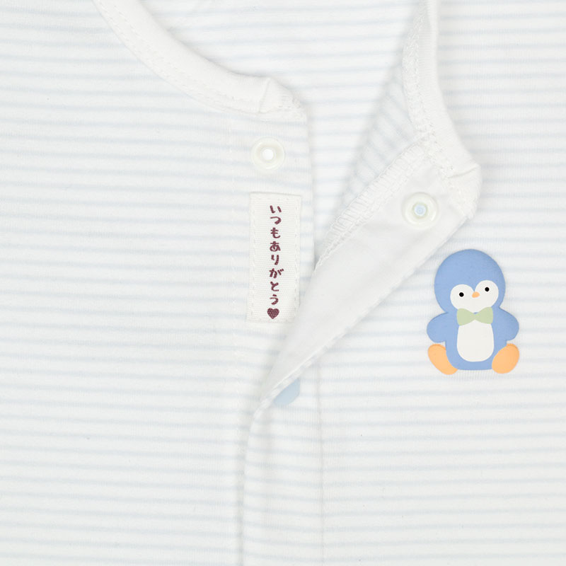 ●素材=本体:綿57%ポリエステル38%ポリウレタン5% 見返し:綿100% おしり部分:綿100% ●サイズ(約・cm)= 60(身丈42・身幅26・袖丈7.5) 70(身丈45・身幅27・袖丈8) 80(身丈48・身幅28・袖丈8.5)
