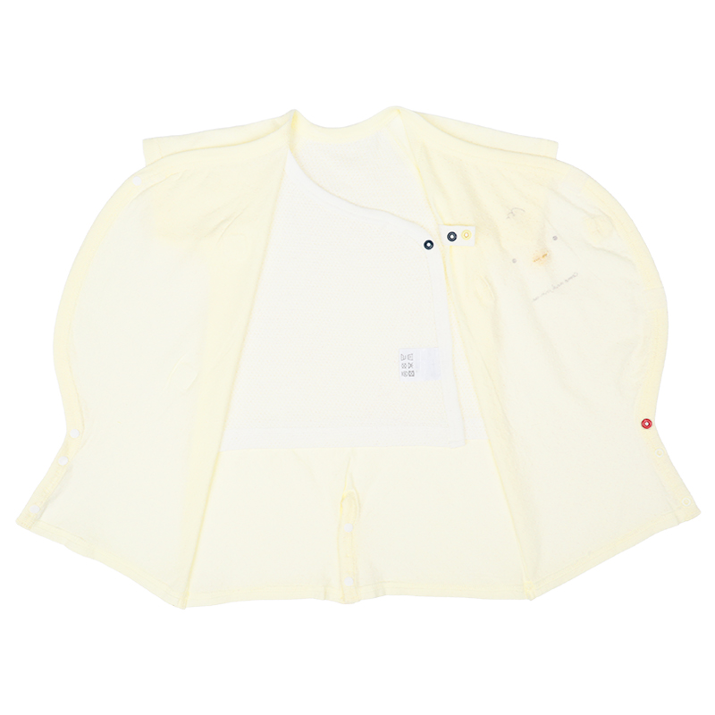 そこで、肌着とドレスオールを一体にし、1枚でお着がえができる肌着付きドレスオールがとっても便利です。