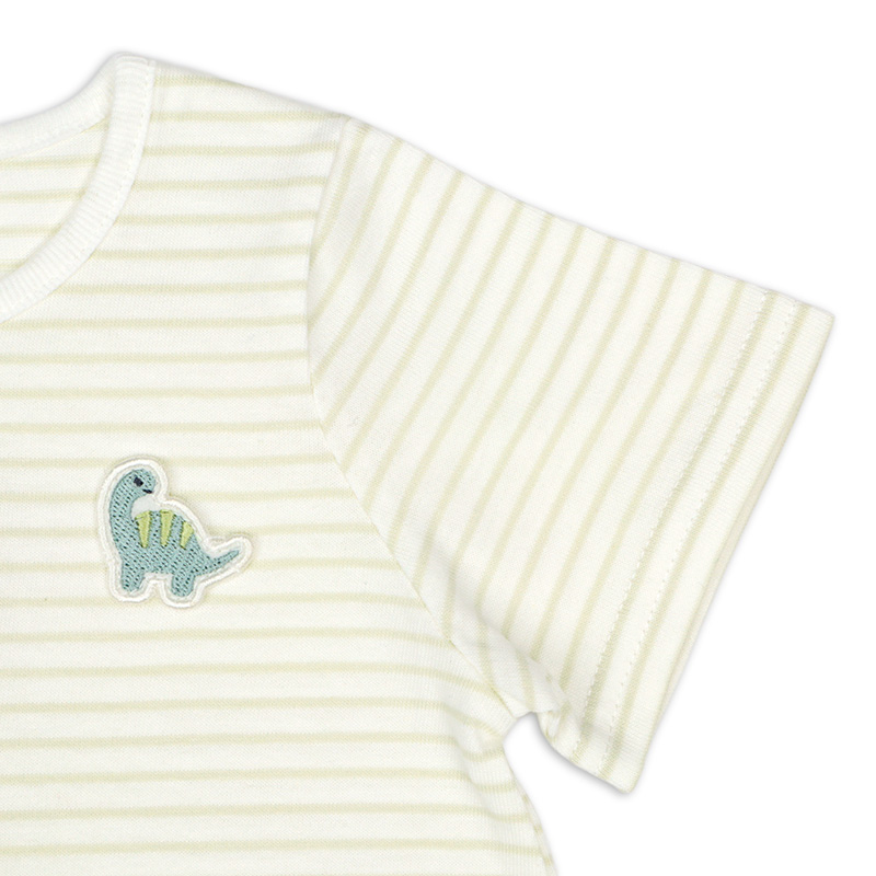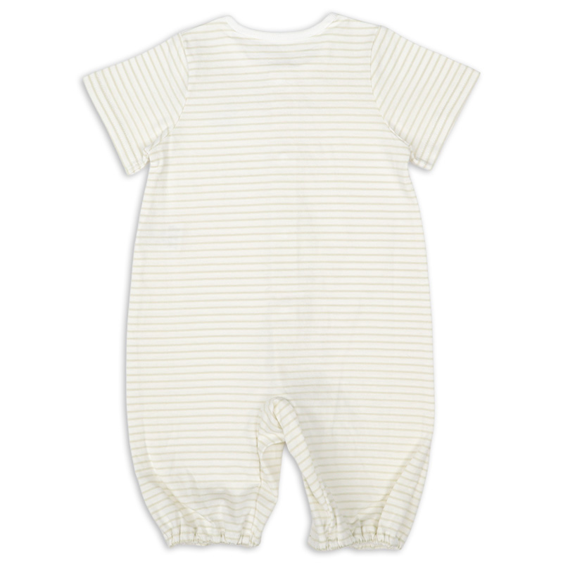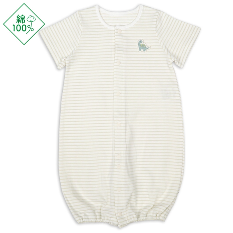 伸縮性のある生地の半袖ドレスオールです。