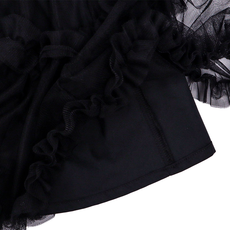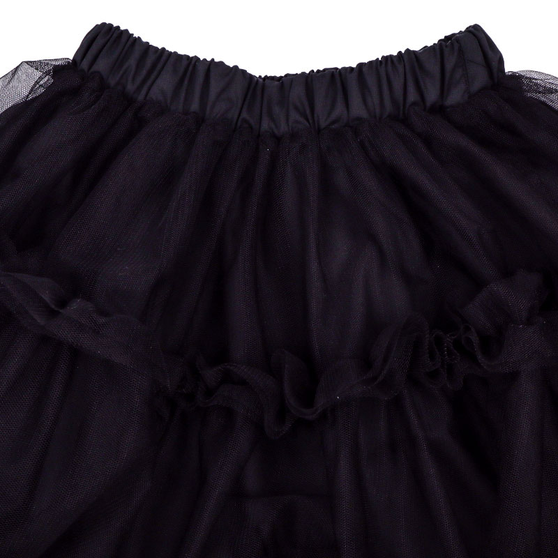 <商品サイズ> 80(スカート丈28・ウエスト上がり幅38) 90(スカート丈30・ウエスト上がり幅40) 95(スカート丈32・ウエスト上がり幅42) 100(スカート丈34・ウエスト上がり幅44) 110(スカート丈37・ウエスト上がり幅47) 120(スカート丈40・ウエスト上がり幅50) <素材> [本体]ポリエステル65%綿35% [チュール部分]ポリエステル100%
