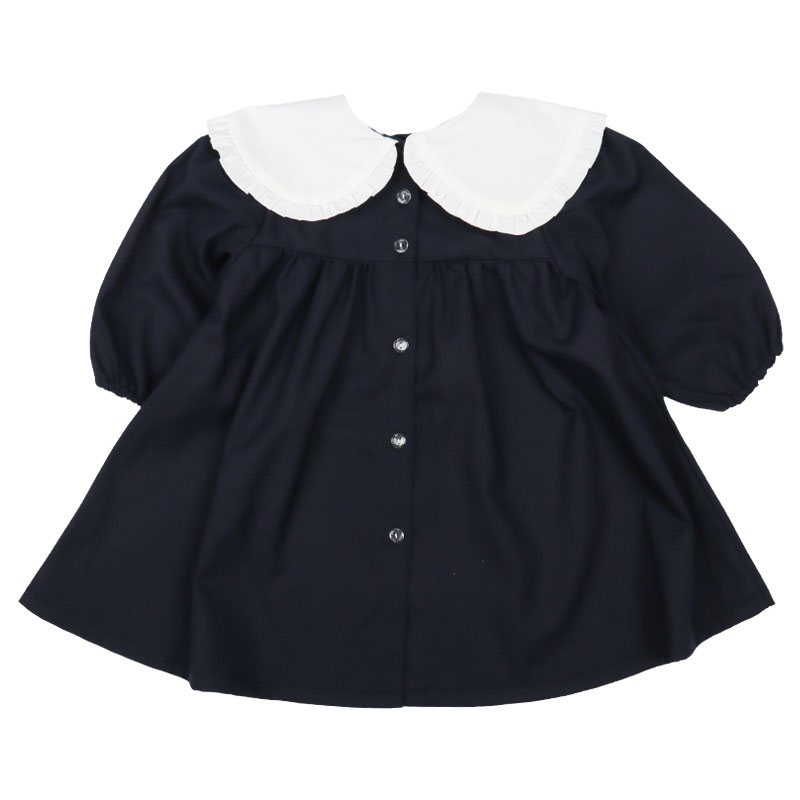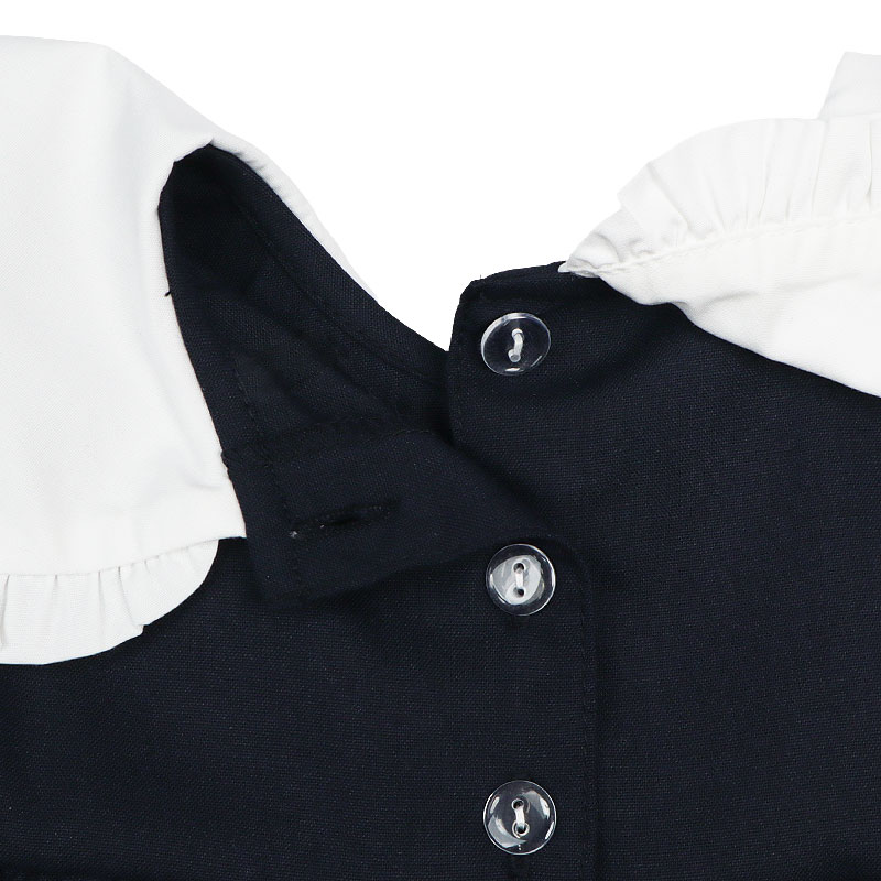 <商品サイズ> 80(身丈47・身幅30・肩幅23.3・袖丈26.5) 90(身丈50・身幅31・肩幅24.1・袖丈28) 95(身丈53・身幅32・肩幅24.9・袖丈29.5) <素材> [本体]ポリエステル69%レーヨン27%ポリウレタン4% [衿部分]ポリエステル65%綿35%