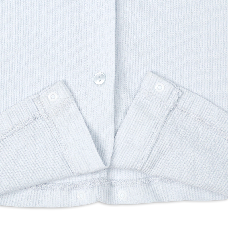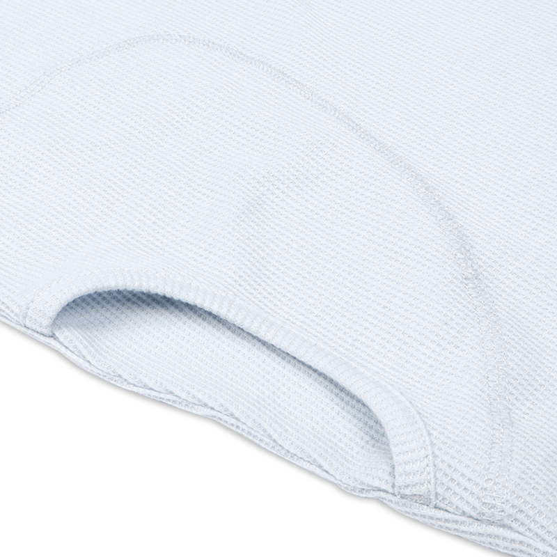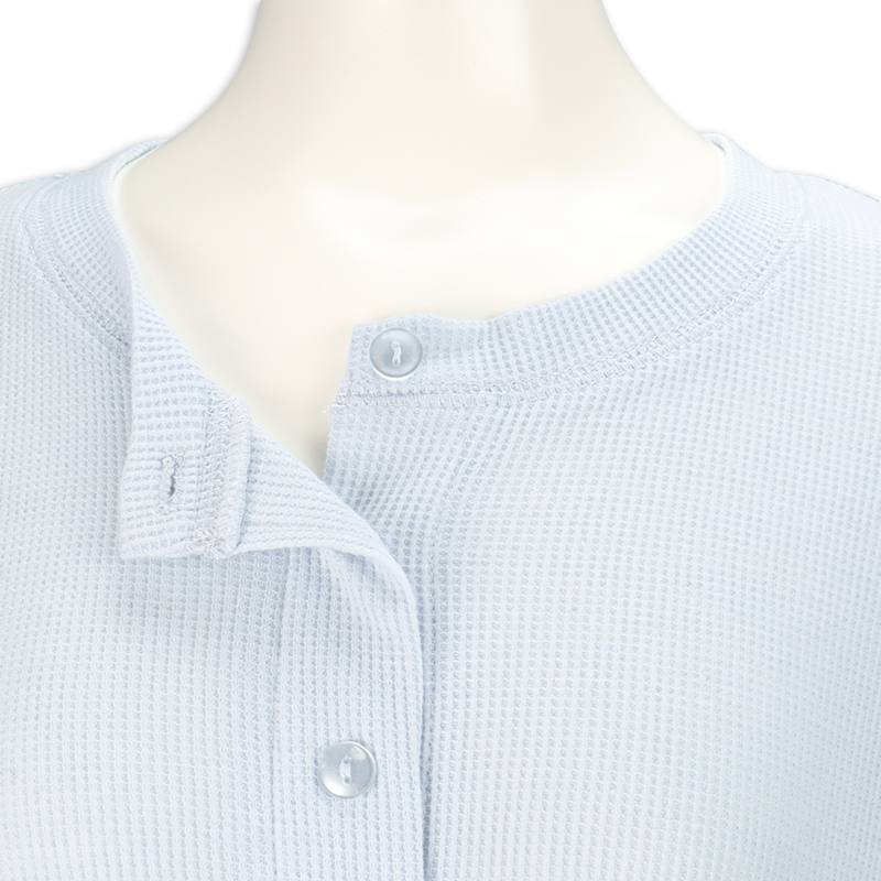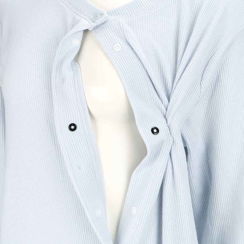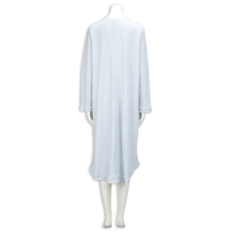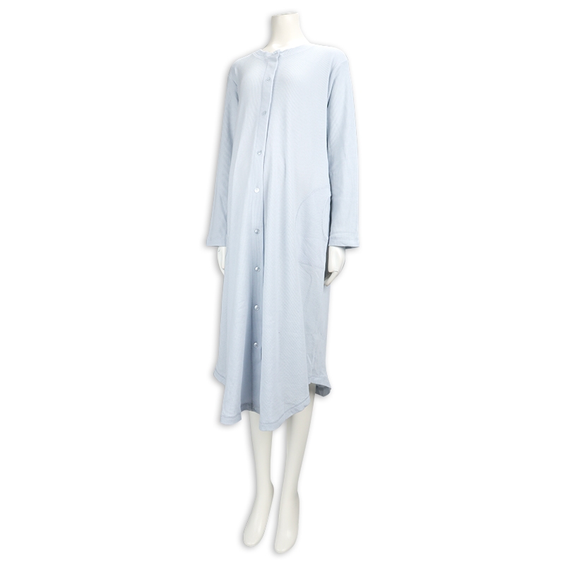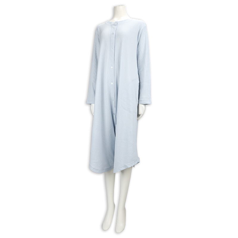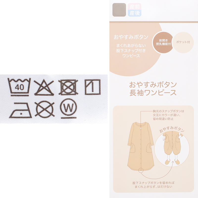 ●素材=ポリエステル65% 綿35% ●洗濯表示=液温は40℃を限度とし洗濯機で弱い洗濯処理ができる。漂白処理はできない。タンブル乾燥はできない。日陰でのつり干し乾燥がよい。底面温度120℃を限度としてアイロン仕上げができる。ドライクリーニング処理ができない。弱い処理でのウエットクリーニング処理ができる。 ●サイズスペック= MーL 身幅53.5 丈110 肩線42.3 袖丈55 袖口13 ●対象期間=産前~産後