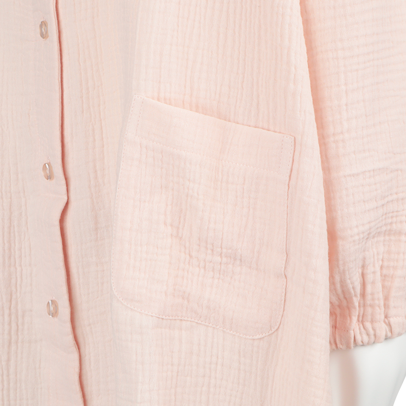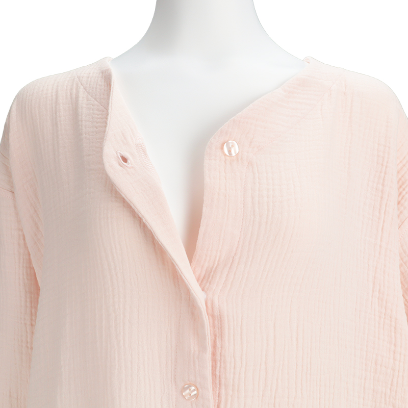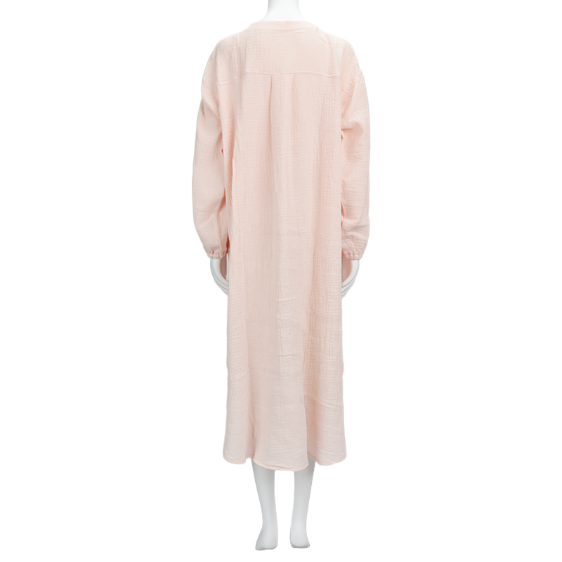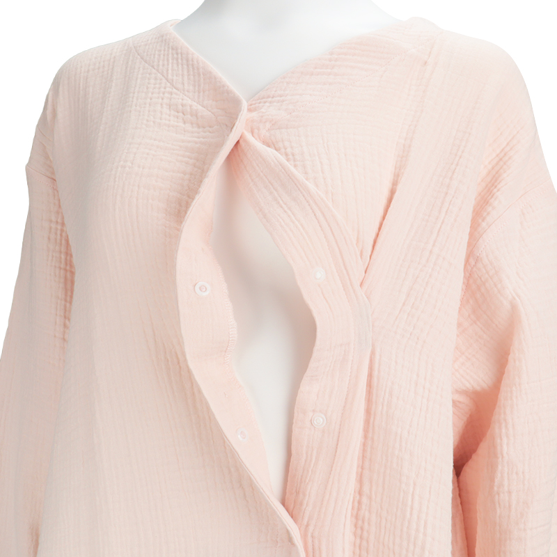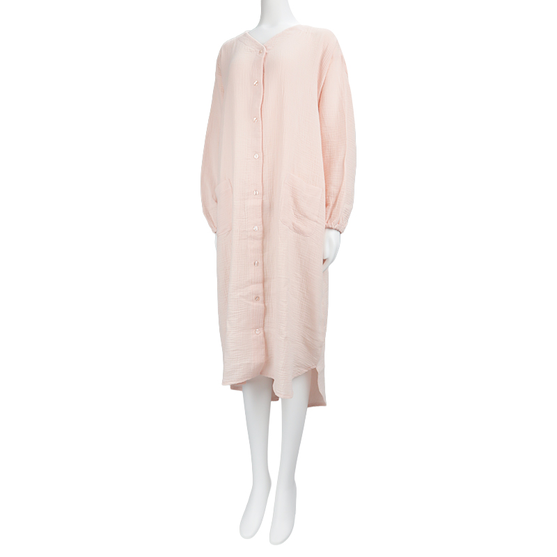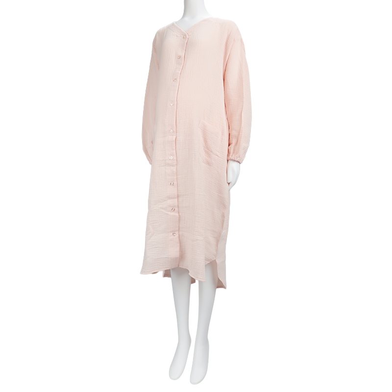 マタニティ春向け、長袖ワンピースパジャマです。 素材は綿100%のWガーゼを使用。 通気性に優れておりとても快適な上に、包み込むような風合いで優しい温かみもある商品です。 第二・第三ボタンはプラスチックボタン開閉にしており、授乳する際は着脱簡単。 サイズはM~Lの1サイズ、ピンクとネイビーの2色展開です。