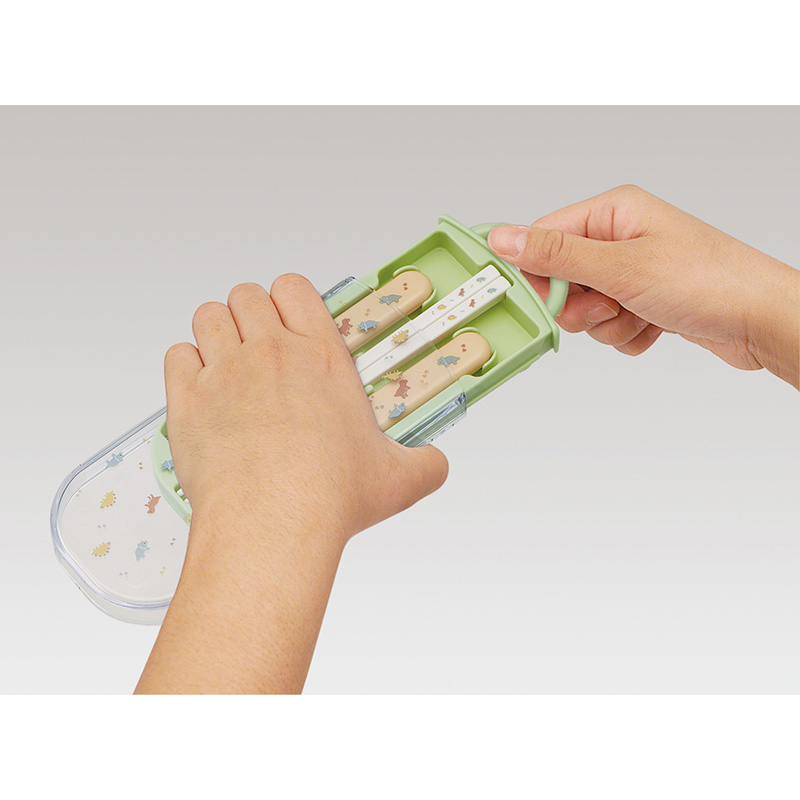 ●商品サイズ ケースサイズ:198×76×17mm 箸の長さ:16.5cm スプーン・フォーク:全長13cm ●重さ:150g ●品質表示(耐熱温度) フタ・ハシ:AS樹脂(耐熱温度100度) 本体:ポリプロピレン(耐熱温度140度) スプーン・フォーク先:ステンレス鋼 スプーン・フォーク持ち手:ABS樹脂(耐熱温度100度)