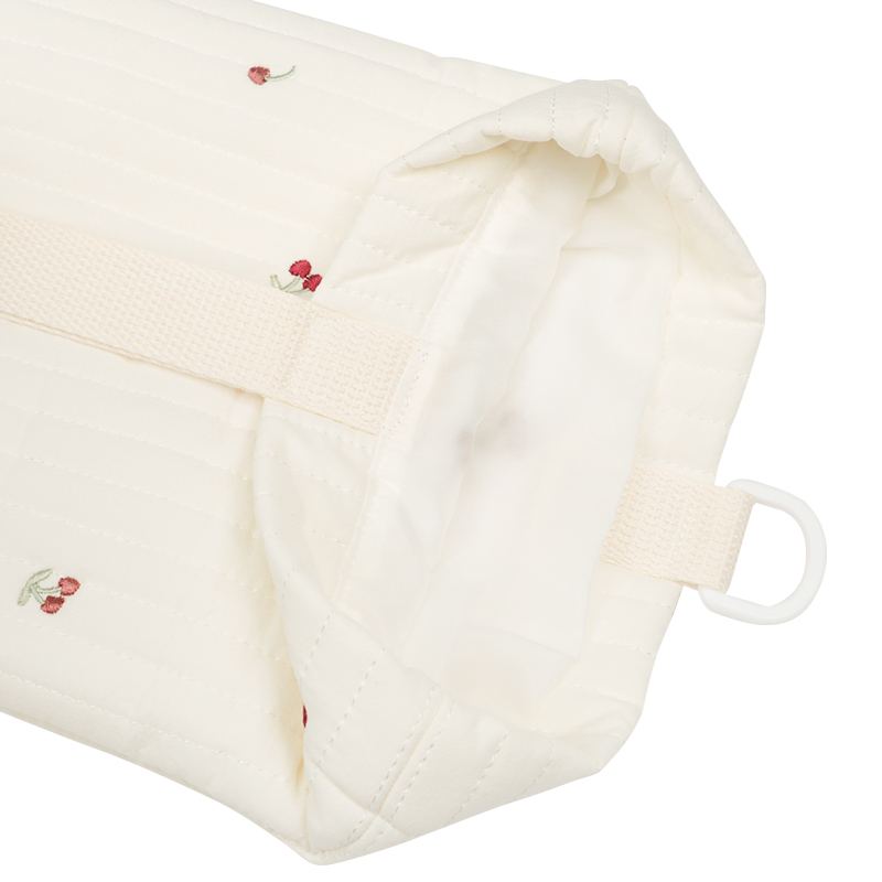 韓国発のキルティング素材“イブル”を使用したシューズバッグです。 総柄刺しゅう入りでシンプルながらもかわいらしいデザインで、通園通学や習い事におすすめです。 バッグ口はDカンが付いており、小さなお子様でも開け閉めしやすい仕様となっています。洗濯可能でお手入れも簡単。