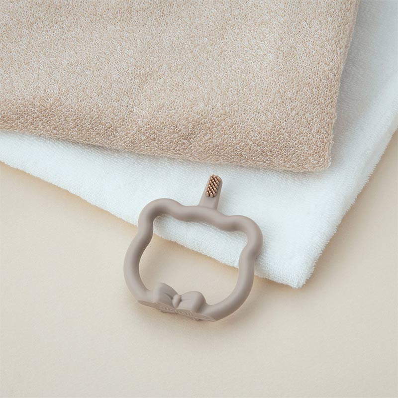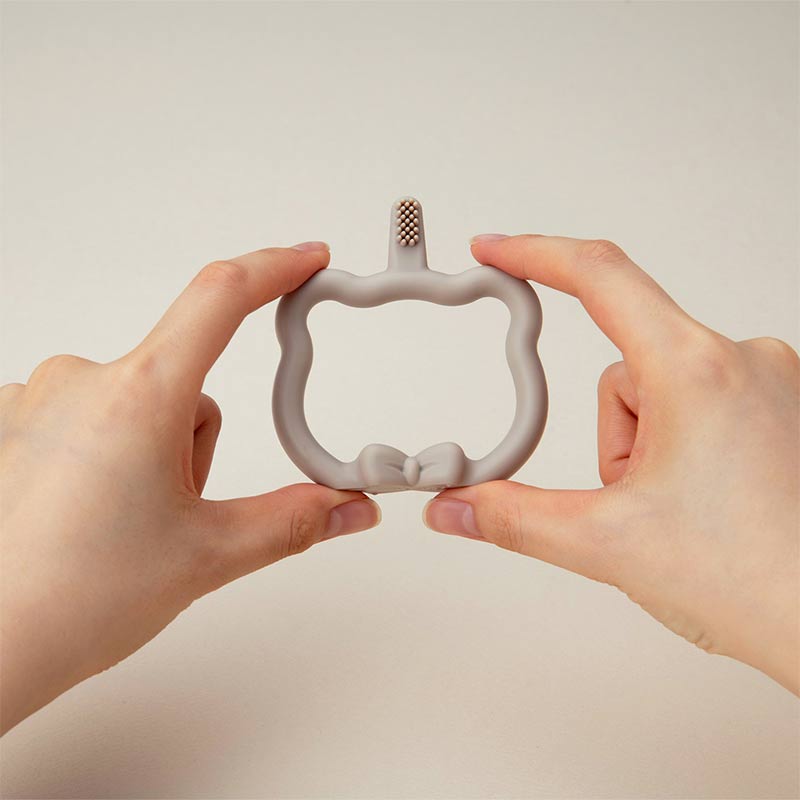 赤ちゃんの歯みがき習慣をサポート 赤ちゃんの歯みがきデビューにぴったり!やわらかいオールシリコン素材で、どこを噛んでも安心。 両面にソフトブラシ付きで、歯がため感覚で楽しくケア。 のど突き防止形状でママパパが安心してお子様に持たせられます。 自立するので衛生的に保管できます。 歯科大学との共同開発で生まれた歯ブラシです。