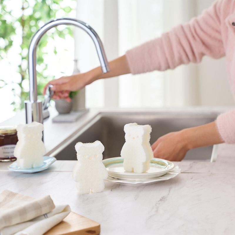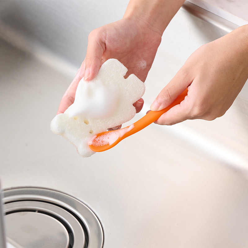 極細ブラシ(トレピカ)の3層式スポンジ 3層構造のスポンジです。 下層が水切れのよい、2層目が泡立ちの良いスポンジで、3層目がアクリルレーヨンの極細ブラシ(トレピカ)になっており、細かいミゾやデコボコに入り込み汚れをかき出します。 ベビー食器にや離乳食調理器などスポンジを分けて使いたい時に便利な4個入りになっております
