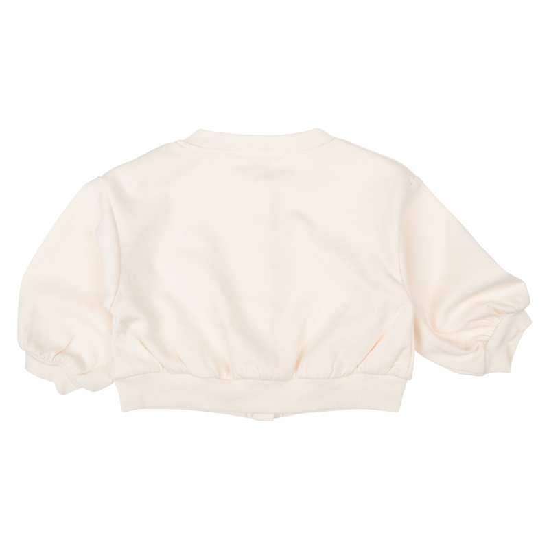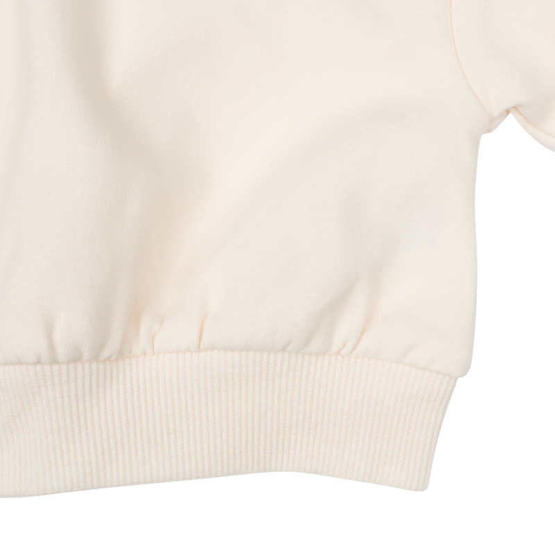 ●素材=本体:ポリエステル63%綿30%ポリウレタン7% リブ部分:綿58%ポリエステル38%ポリウレタン4% ●サイズ= 【80cm】着丈29胸囲67肩幅32.5袖丈22 【90cm】着丈32胸囲70肩幅34袖丈26 【95cm】着丈33.5胸囲72肩幅35袖丈28