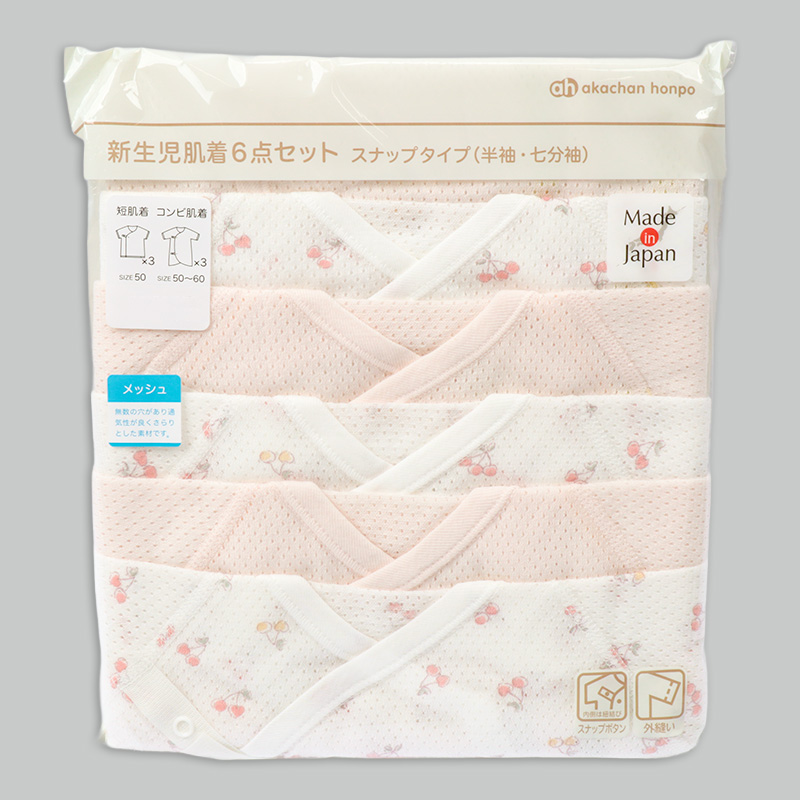 素材:メッシュ(綿100%) サイズ(約・ cm)= 短肌着 50cm(着丈 32 、 身幅 21.5 、袖丈17) コンビ肌着 50-60cm(着丈45 、 身幅23 袖丈21)