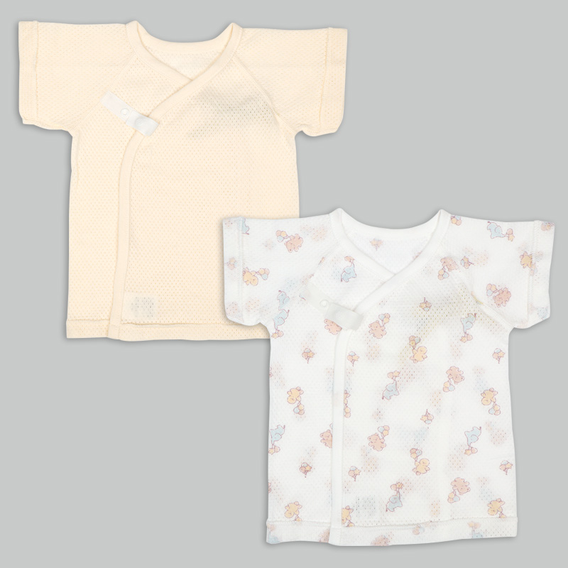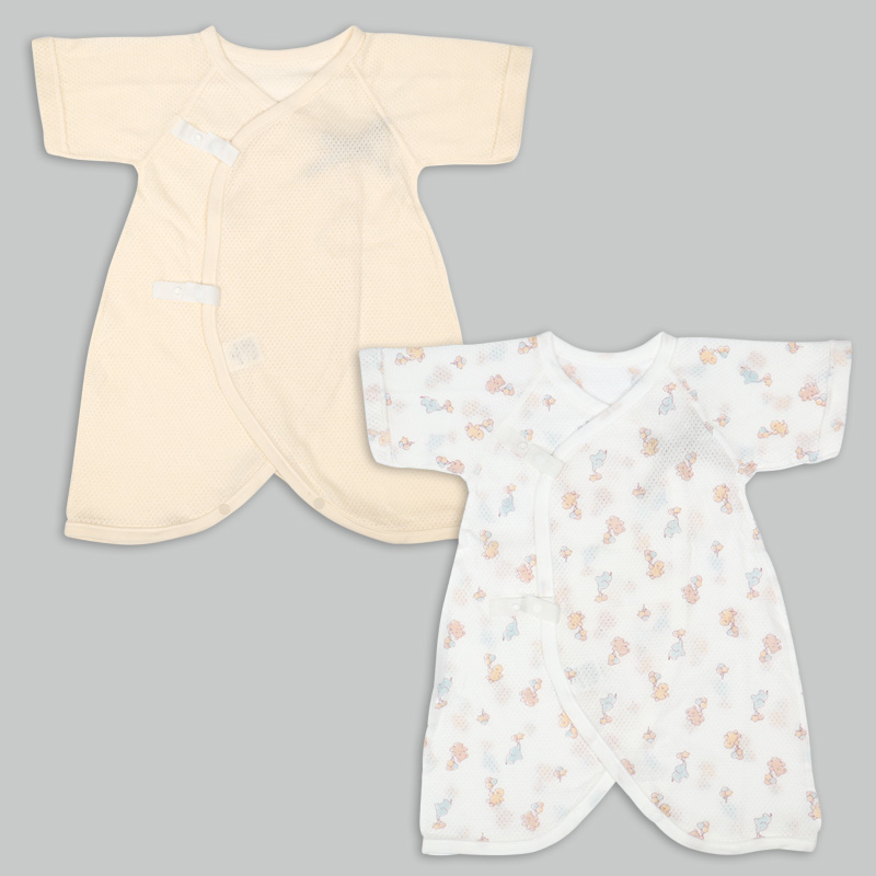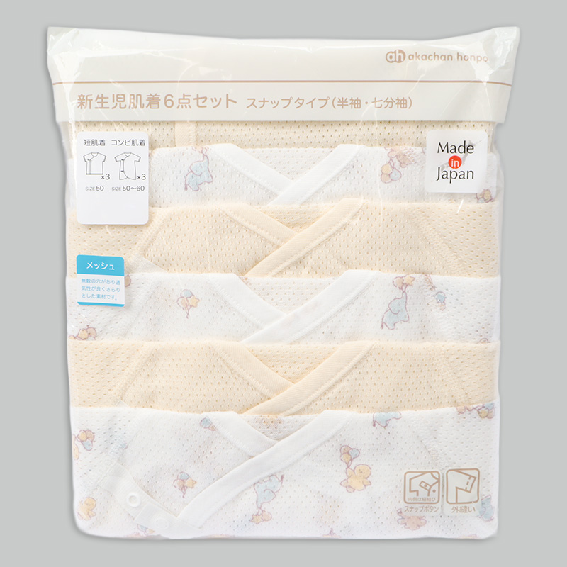 [スナップタイプ]メッシュ 新生児肌着6点セット 半袖・七分袖 クリーム